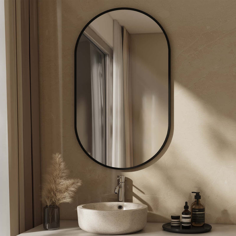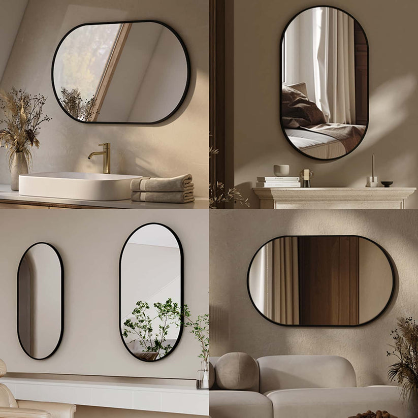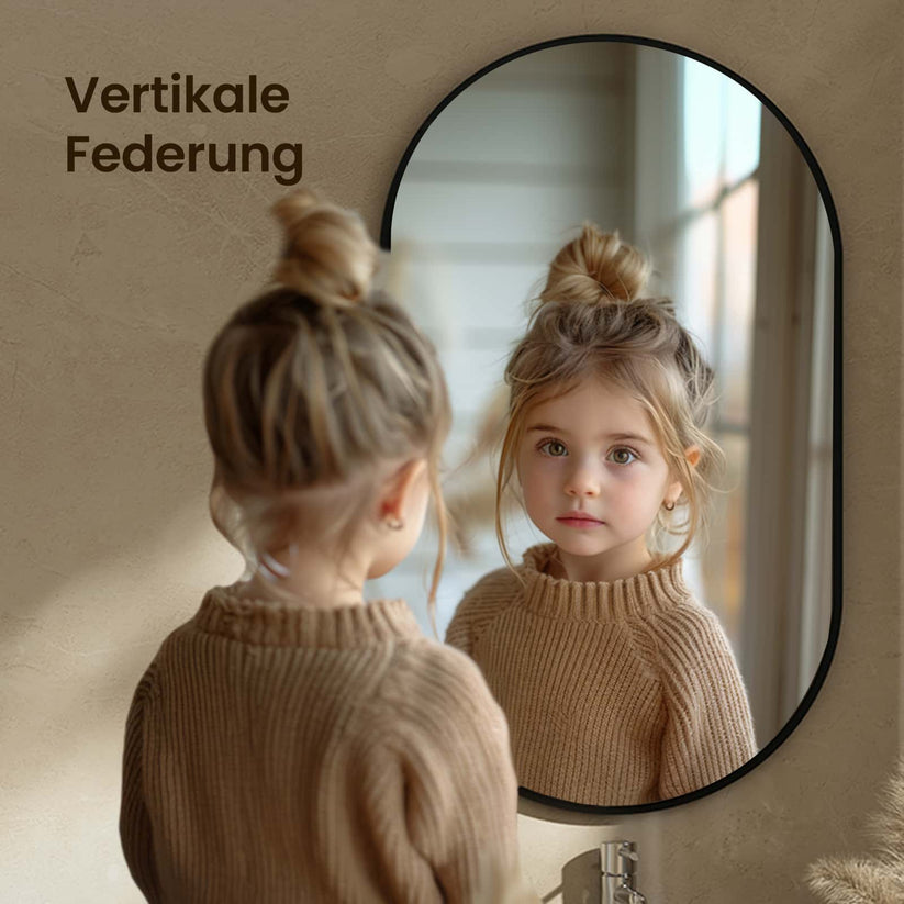 Dieser ovalerahmen Wandspiegel vereint modernes Design mit hoher Funktionalität. Kupferfreies Glas und ein robuster Aluminiumrahmen sorgen für klare Reflexionen und Langlebigkeit – ideal für Bad, Flur oder Schlafzimmer.