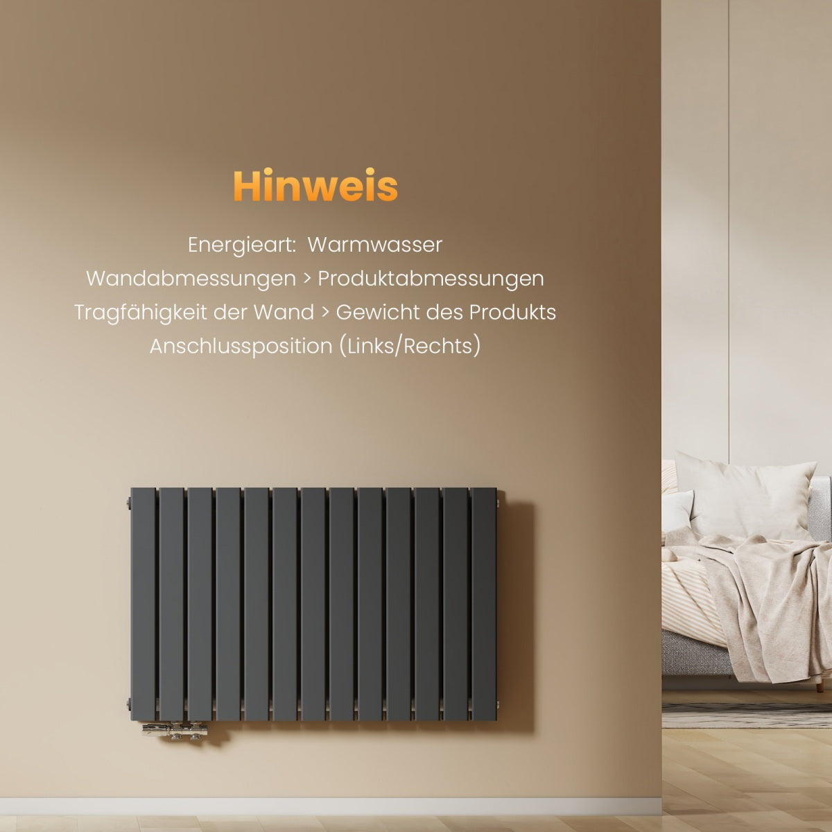 Horizontaler Heizkörper zur Wandmontage