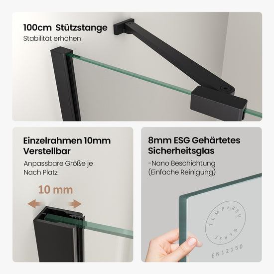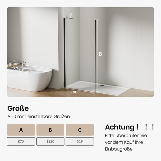 Duschwand für Walk-In-Duschen mit Nano-Beschichtung & 8 mm Sicherheitsglas