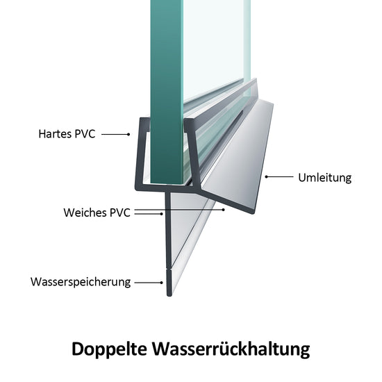 Duschdichtung mit Spritzwasserschutz, passend für 4–6 mm Glas