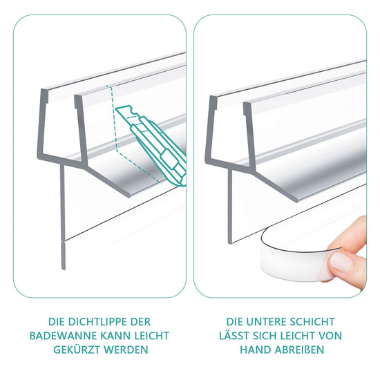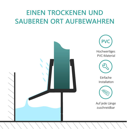 Diese flexible Duschdichtung aus hochwertigem PVC verhindert Spritzwasser und schützt Ihr Badezimmer zuverlässig vor Nässe. Sie ist ideal für gerade Glastüren mit 4–6 mm Glasstärke.