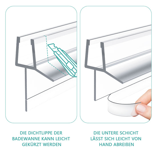 EMKE Schwallschutzleiste S04 Badezimmer, geeignet für 4–6 mm Glas (abreißbare Kante), Schwanzlänge 20 mm, Tropfreflektordichtung, verwendet für 4–6 mm Glas, Material PVC, Farbe klar.