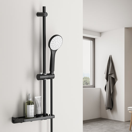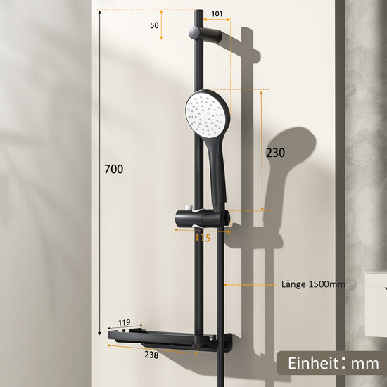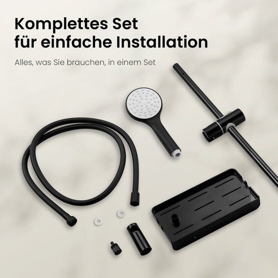 Brauseset mit Handbrause, höhenverstellbarer Stange & Seifenablage