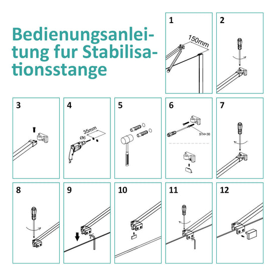 - Geeignet für Glaswände mit 6–8 mm Stärke