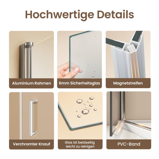 Diese Duschkabine verfügt über zwei Schwingtüren,die sich nach innen und außen öffnen lassen.Die beidseitige Nano-Beschichtung erleichtert die Reinigung.