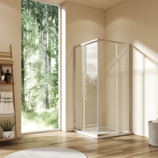 Diese Duschkabine mit Doppelschiebetür ist ideal für den Eckeinstieg und bietet durch ihre Vollrahmung Stabilität sowie eine moderne Optik fürs Bad.