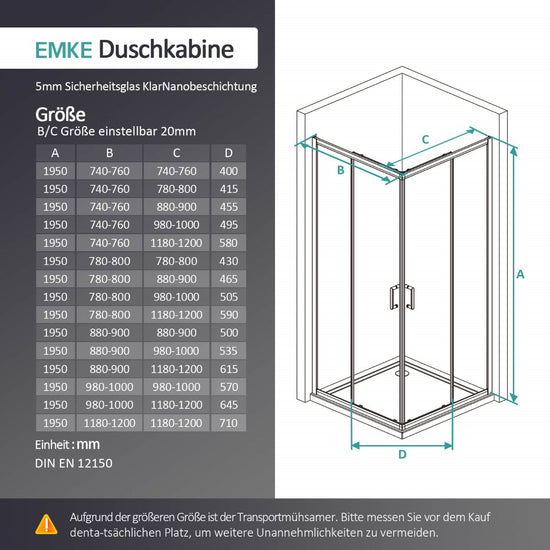 Eck-Duschkabine mit Doppelschiebetür und 5 mm ESG-Sicherheitsglas