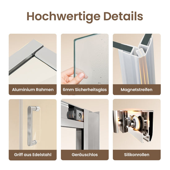 - Zwei leichtgängige Schiebetüren mit Doppel-Laufrollen