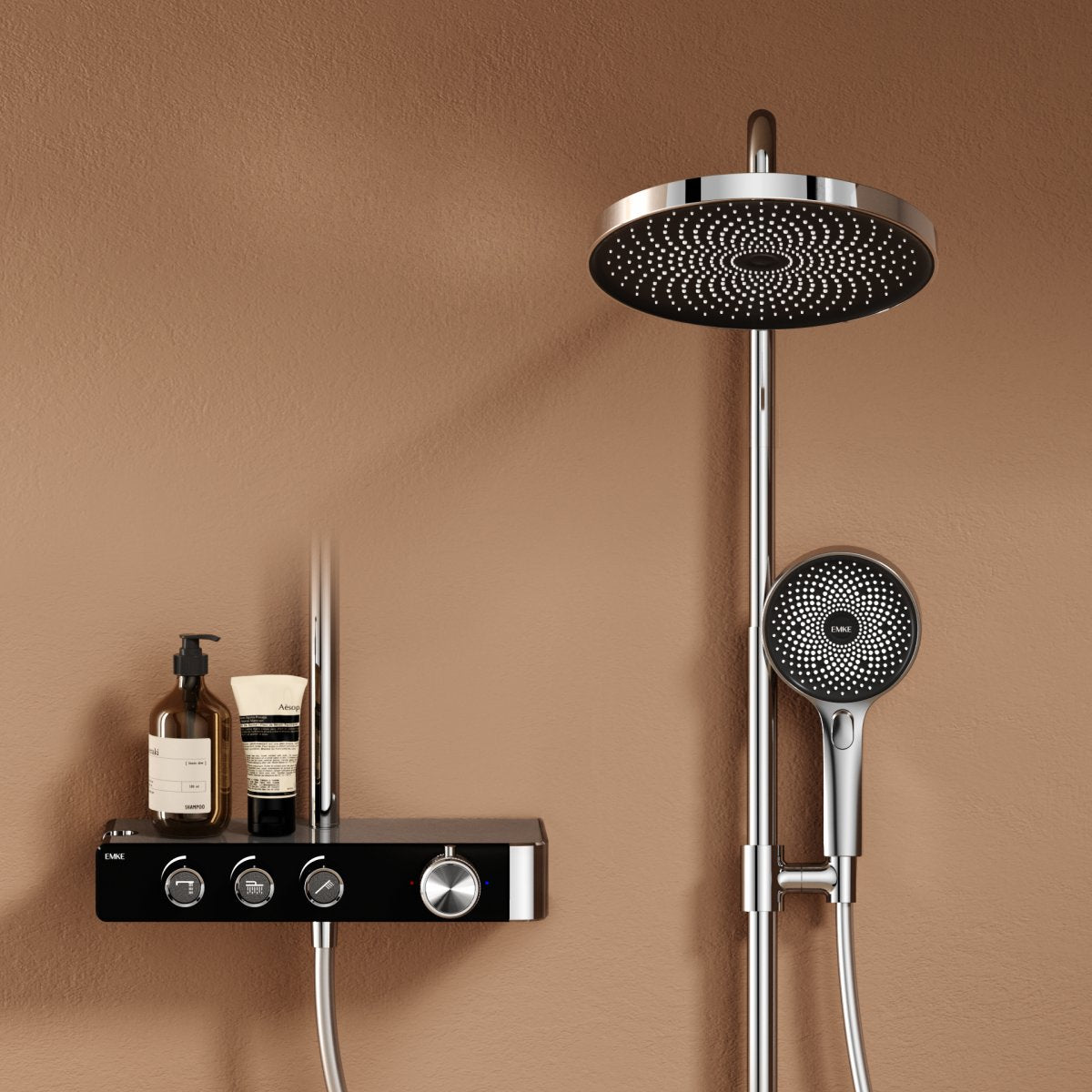 Dieses Duschsystem bietet ein komfortables Duscherlebnis mit drei Strahlarten und präziser Thermostatsteuerung. Das moderne Design und die einfache Installation machen es ideal für jedes Badezimmer.