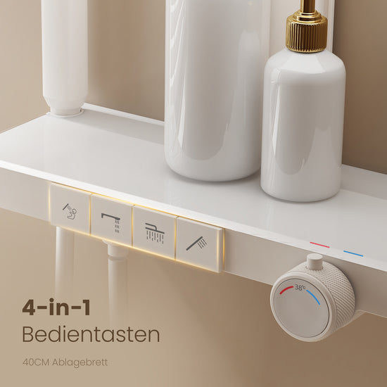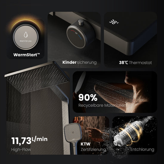 38 °C Thermostat, Ablage, Digitale Temperaturanzeige, Kaltwasservorabfluss und Chlorfilter