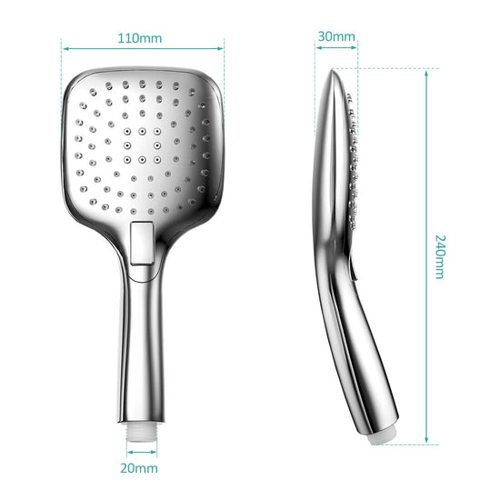 Diese Handbrause bietet drei komfortable Strahlarten per Knopfdruck und sorgt für ein intensives Duscherlebnis – auch bei geringem Wasserdruck. Das robuste verchromte ABS-Gehäuse ist korrosionsbeständig und leicht zu reinigen – ideal für Bad und Spa.