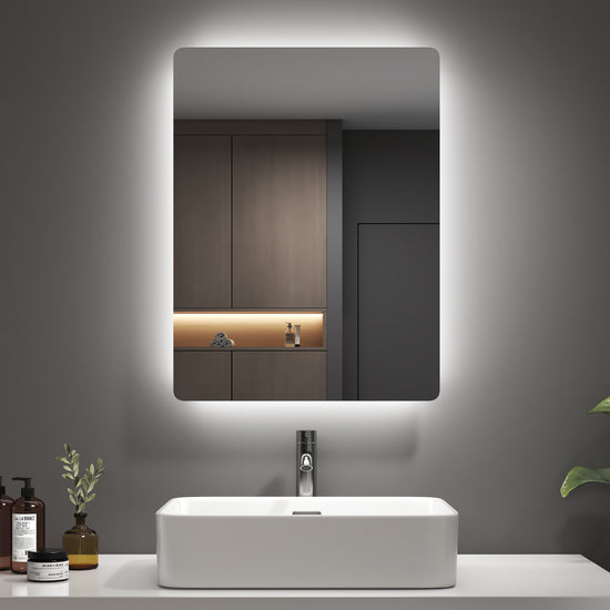 Dieser stilvolle, rechteckige Badspiegel mit abgerundeten Ecken bietet blendfreie LED-Beleuchtung und vielseitige Steuerungsoptionen – ideal für Badezimmer und Wohnräume.