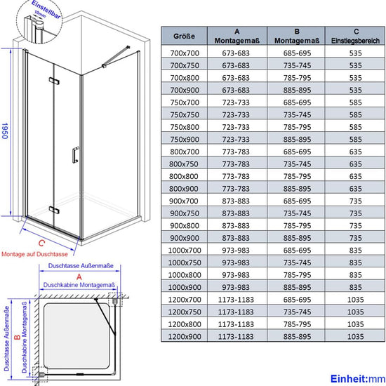 - Maße: erhältlich von 75×75 cm bis 120×120 cm, Höhe 185 cm