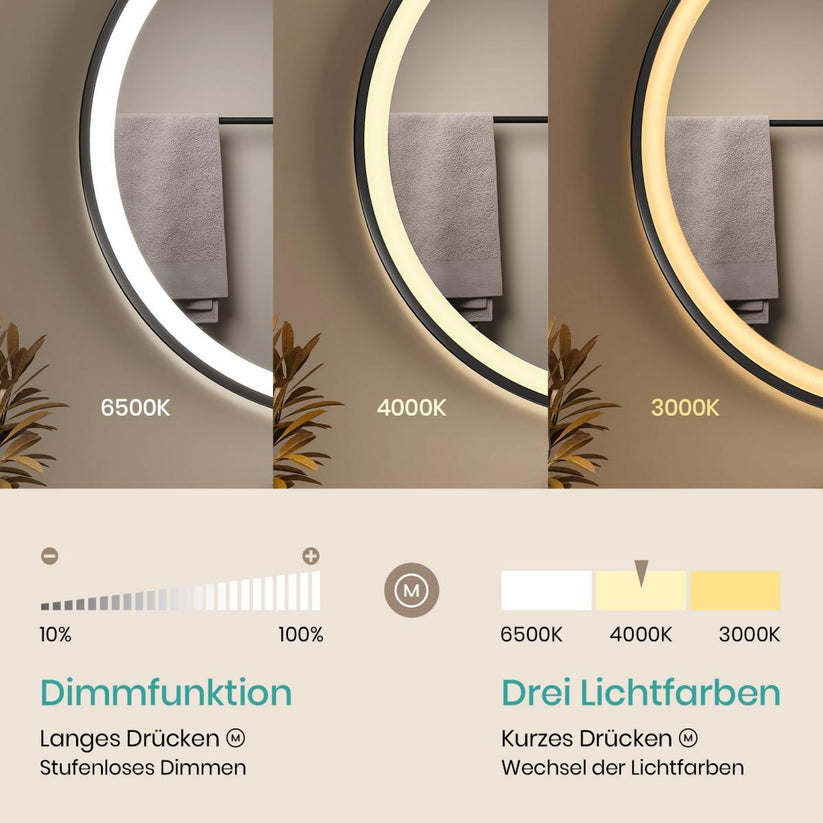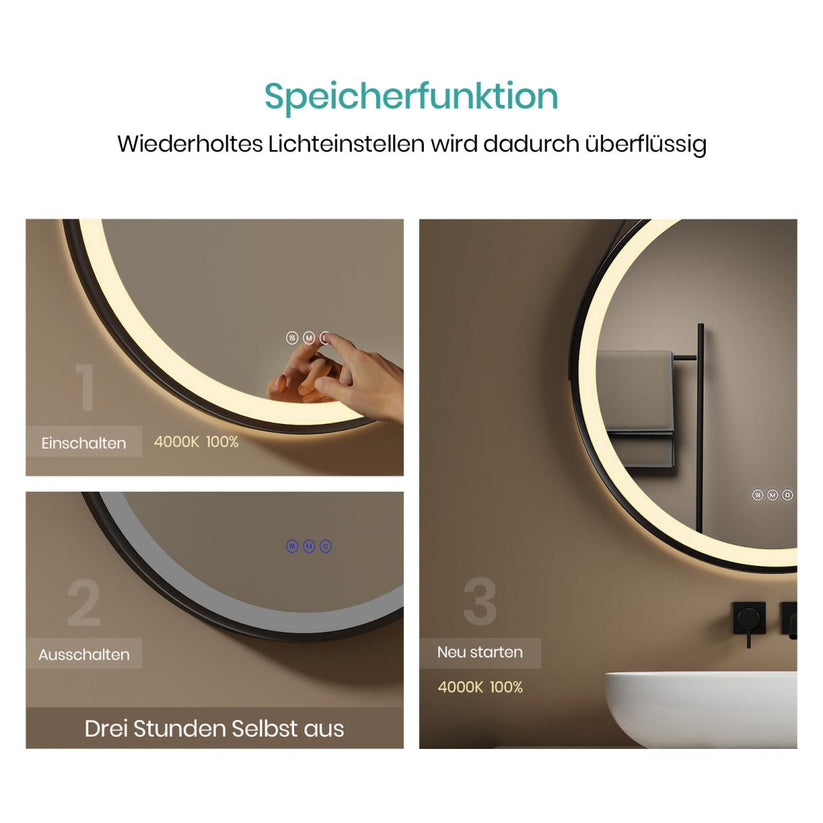 Farbtemperatur einstellbar, Helligkeit einstellbar, Speicherfunktion und Automatische Abschaltung nach 3 Stunden
