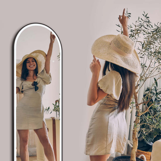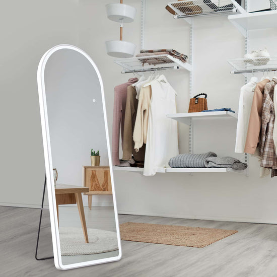 Dieser moderne LED-Ganzkörperspiegel kombiniert stilvolles Design mit intelligenter Lichtsteuerung – ideal für Schlafzimmer, Ankleide- oder Eingangsbereiche.
