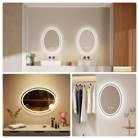 Ovaler LED-Badezimmerspiegel mit Antibeschlag und 3 Lichtfarben