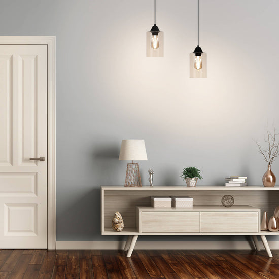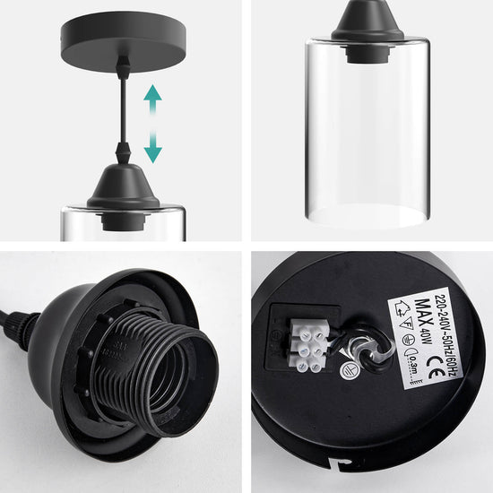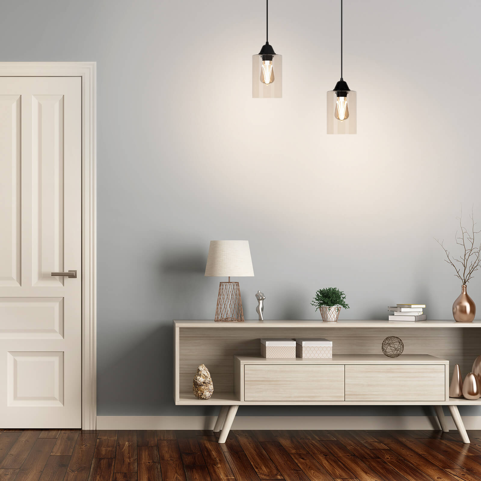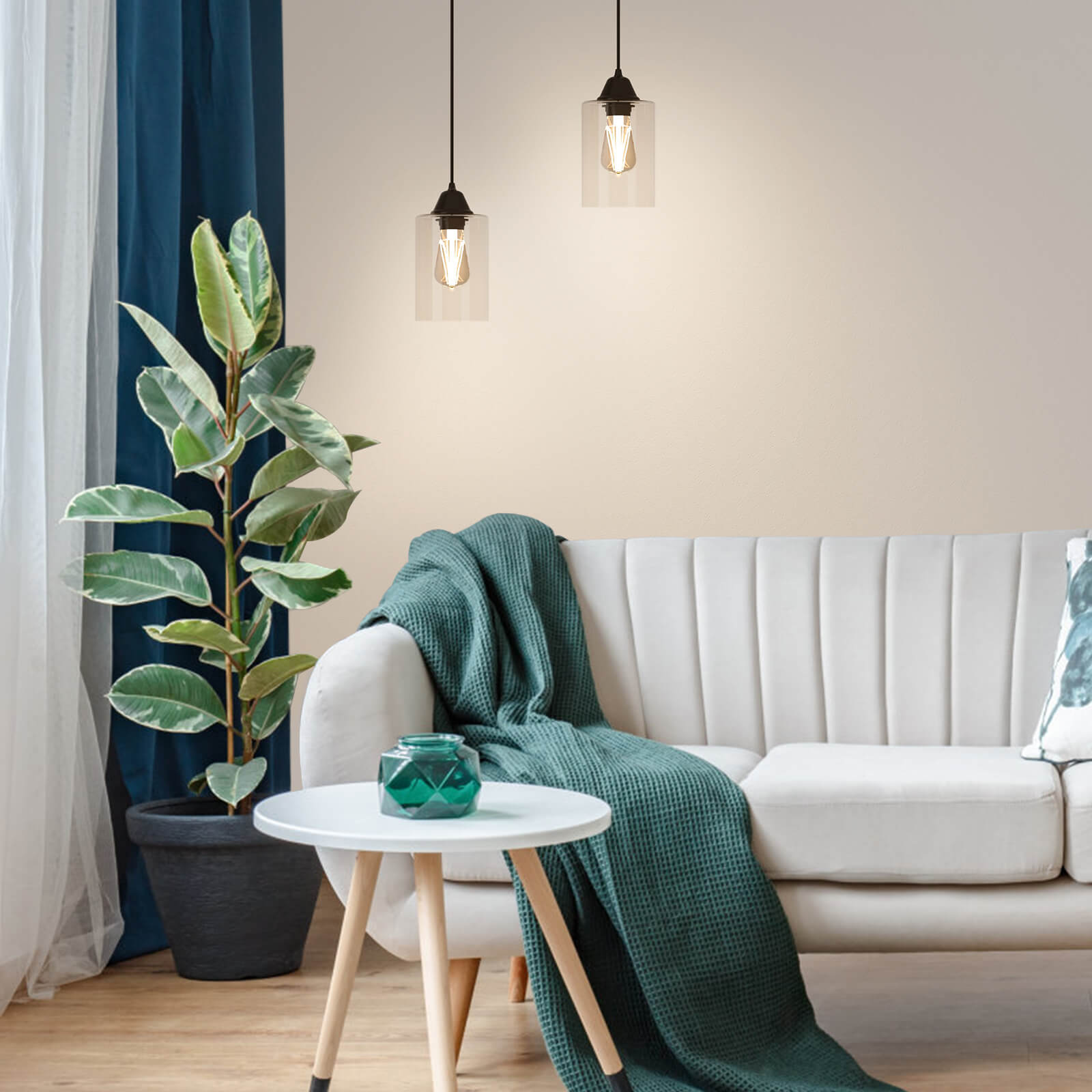 - Schlichtes und elegantes Design: Die transparente Glasabdeckung besticht durch ihre stilvolle Einfachheit. Das Licht wird durch das Glas gleichmäßig in alle Ecken des Raumes gestreut. Sowohl die Decke als auch die Drähte sind schwarz gehalten. Dadurch lässt sich die Pendelleuchte problemlos in jeden dekorativen Stil integrieren.