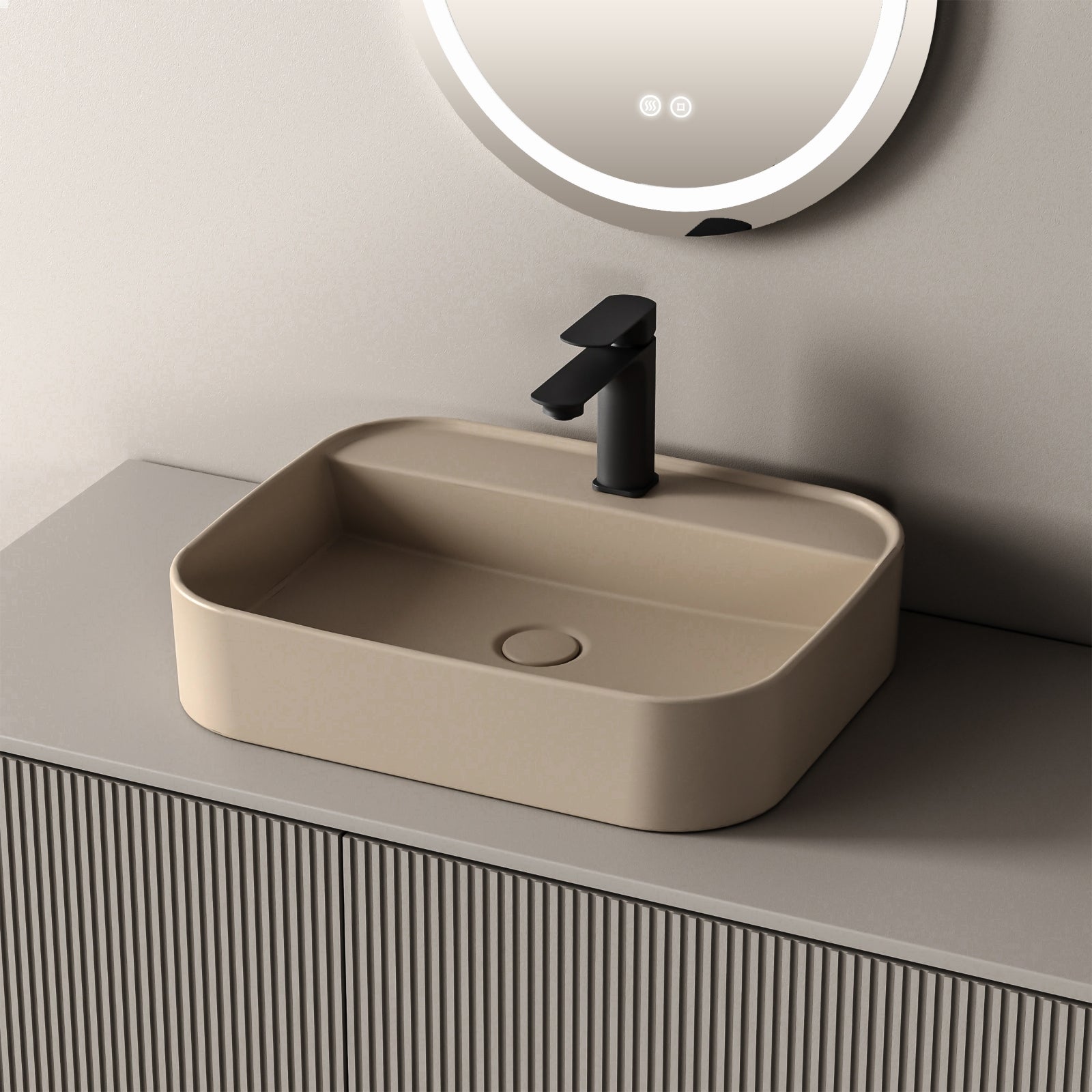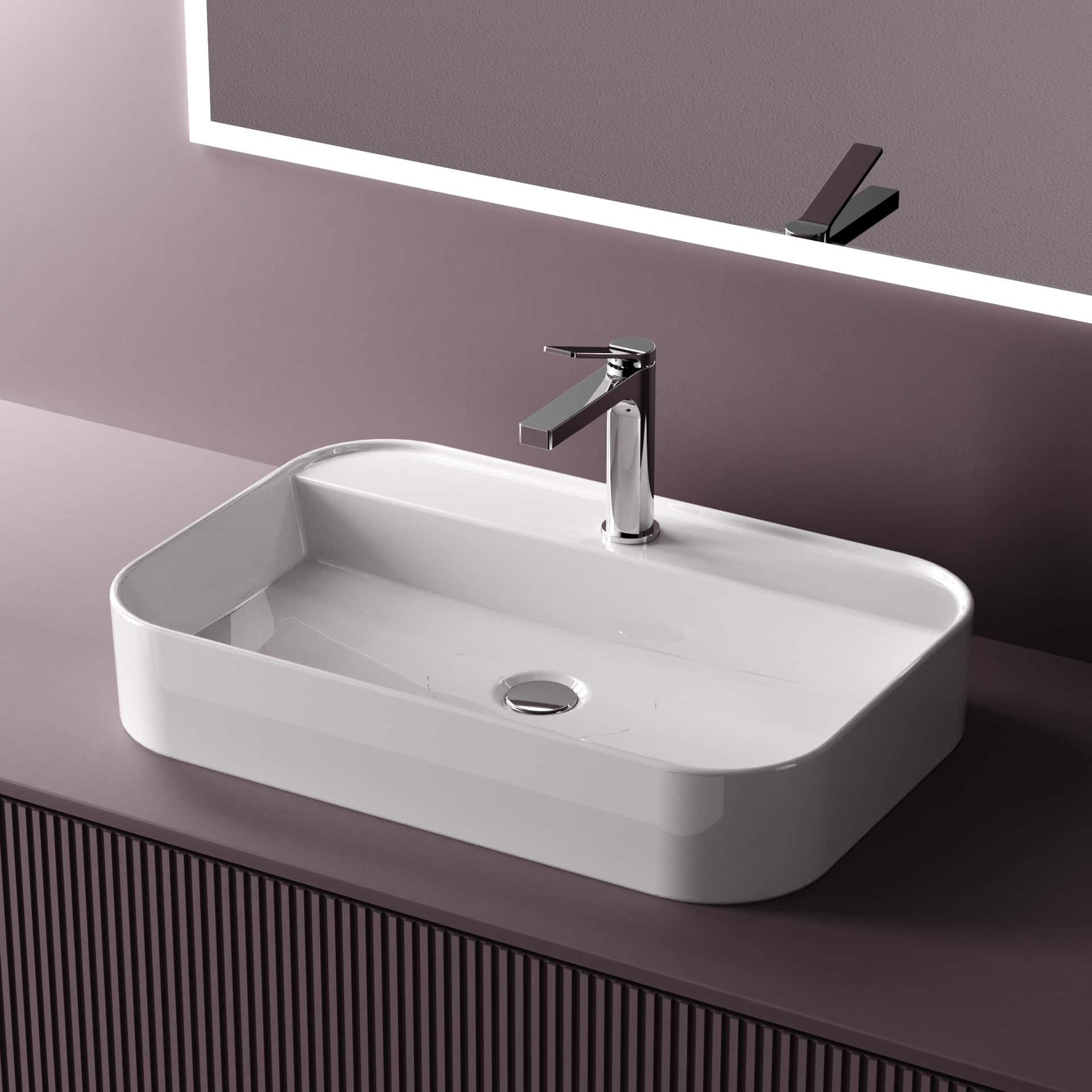 Dieser rechteckige Aufsatzwaschtisch überzeugt durch seine sanft gerundeten Ecken und ein modernes, elegantes Design. Die porenfreie Keramikoberfläche ist besonders pflegeleicht und bleibt auch bei langfristiger Nutzung fleckenfrei.