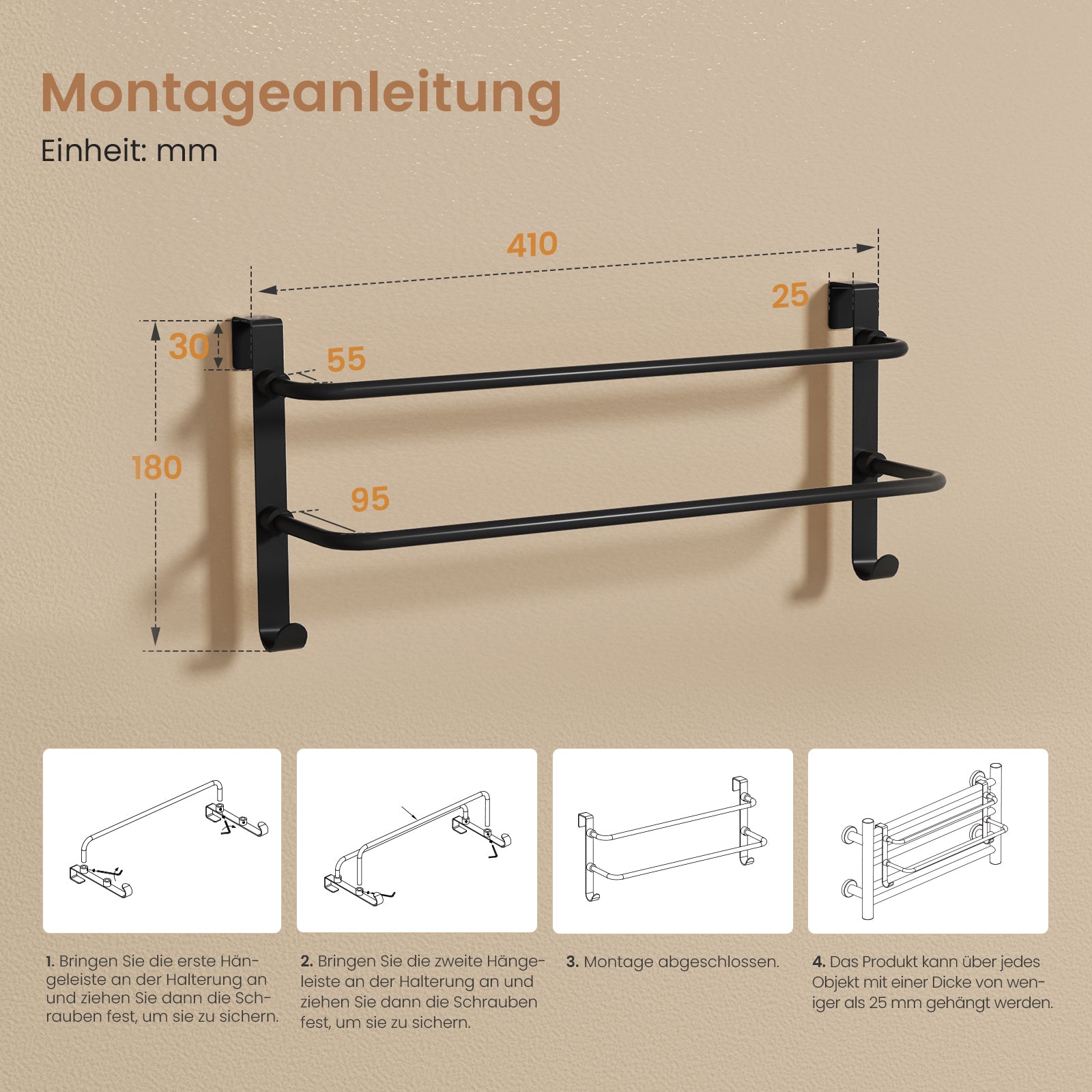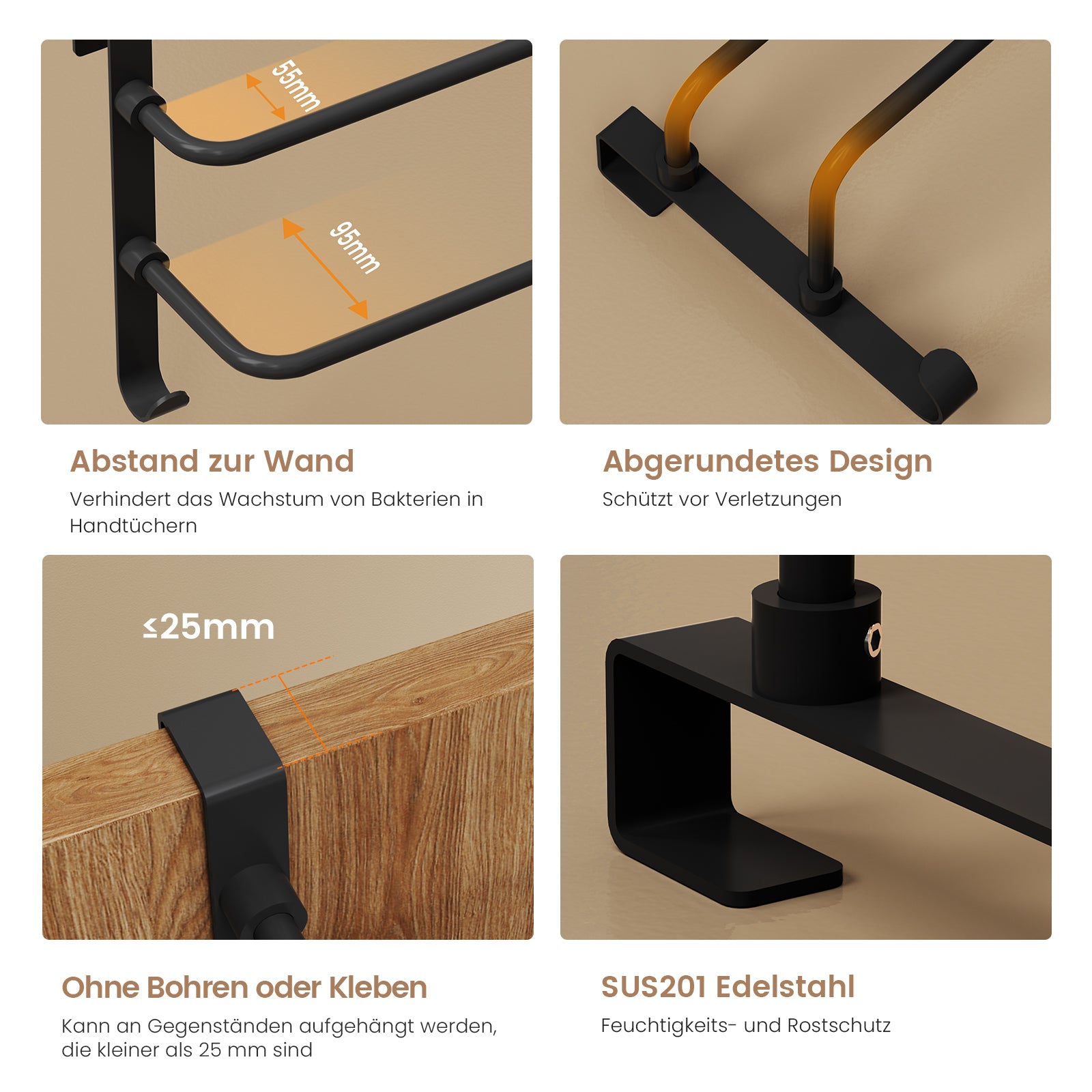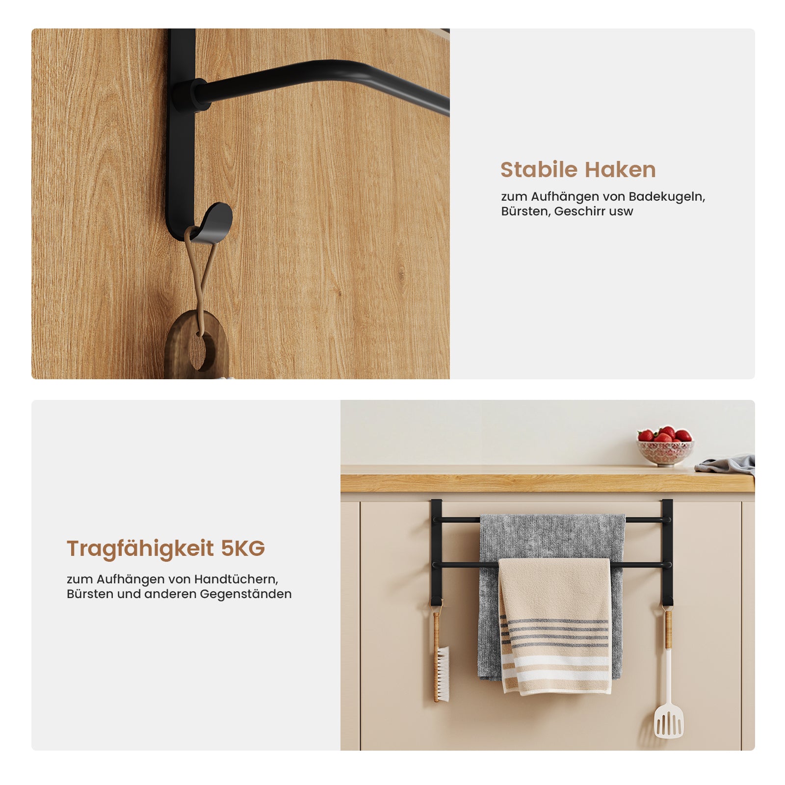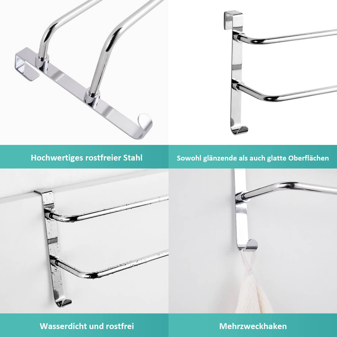 Handtuchhalter mit 2 Stangen & Haken – ohne Bohren, zur Türmontage