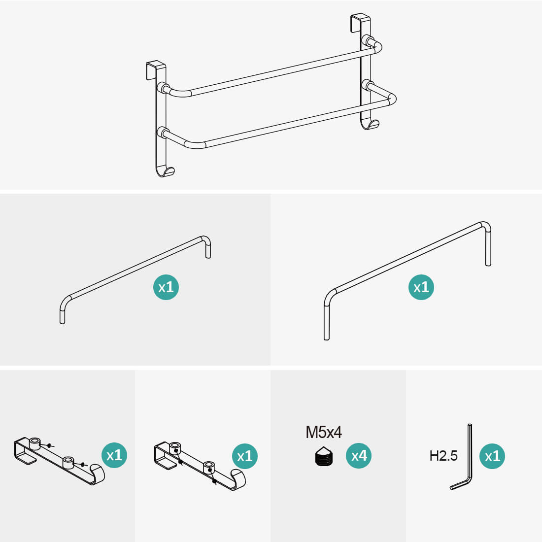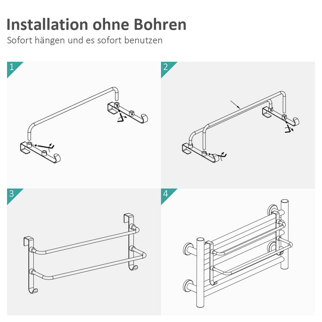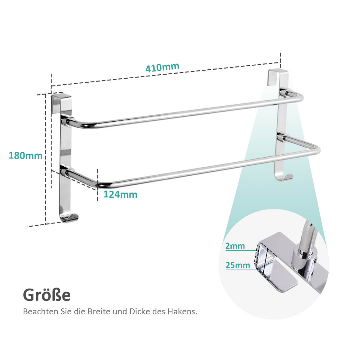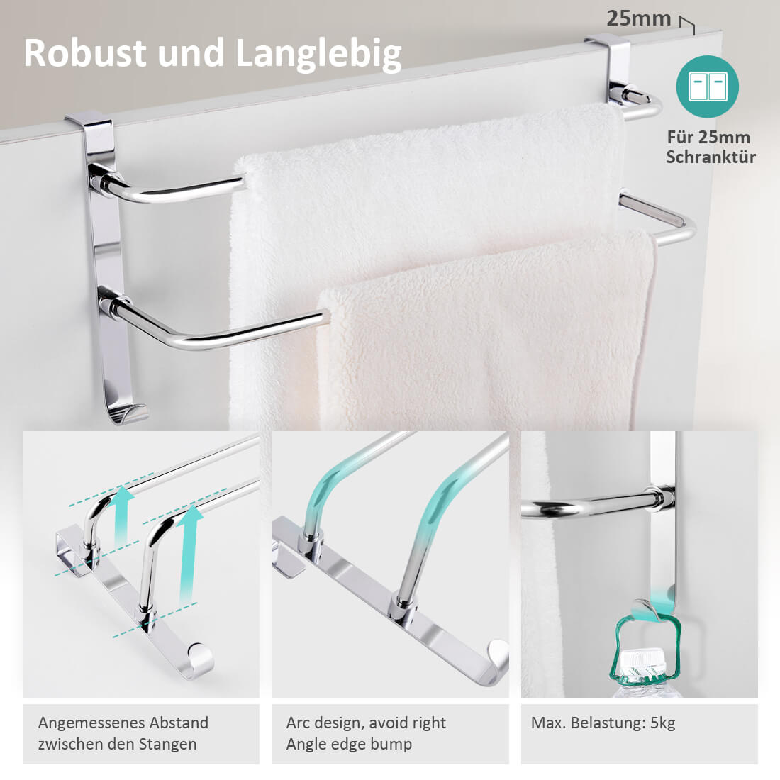 Handtuchhalter mit 2 Stangen & Haken – ohne Bohren, zur Türmontage