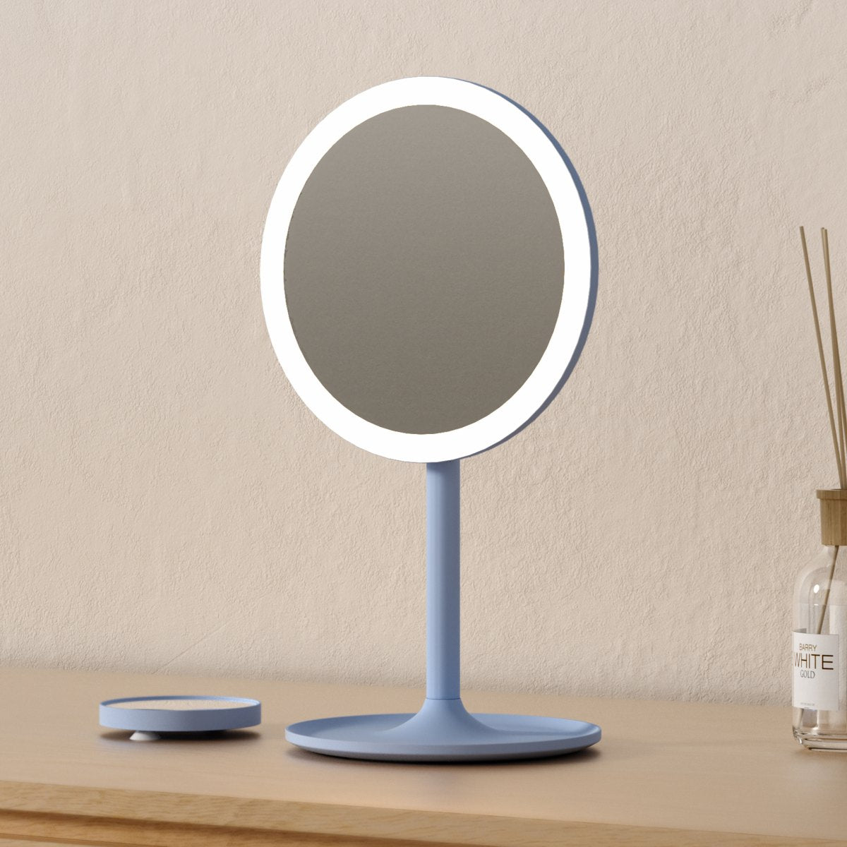 Dieser dimmbare Kosmetikspiegel mit LED-Beleuchtung bietet drei Lichtfarben und eine praktische Touch-Steuerung. Dank integriertem Akku ist er kabellos nutzbar – perfekt für Make-up und Pflege zuhause oder unterwegs.