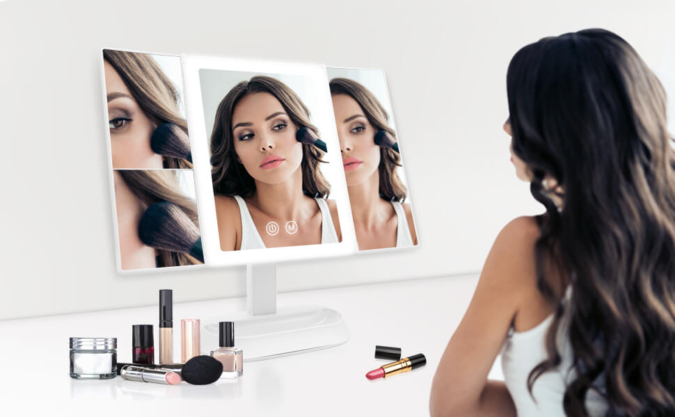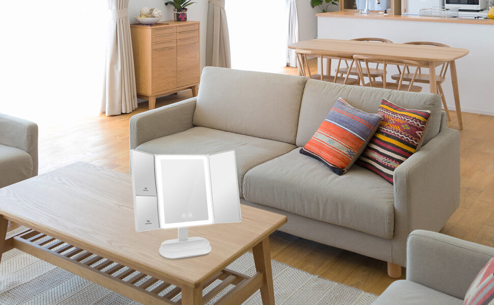 Dieser Desktop-Spiegel bietet präzise Vergrößerung und adaptive Beleuchtung für Make-up-Anwendungen. Mit klappbarem Design und integriertem Stiftehalter optimiert er die Beauty-Routine.
