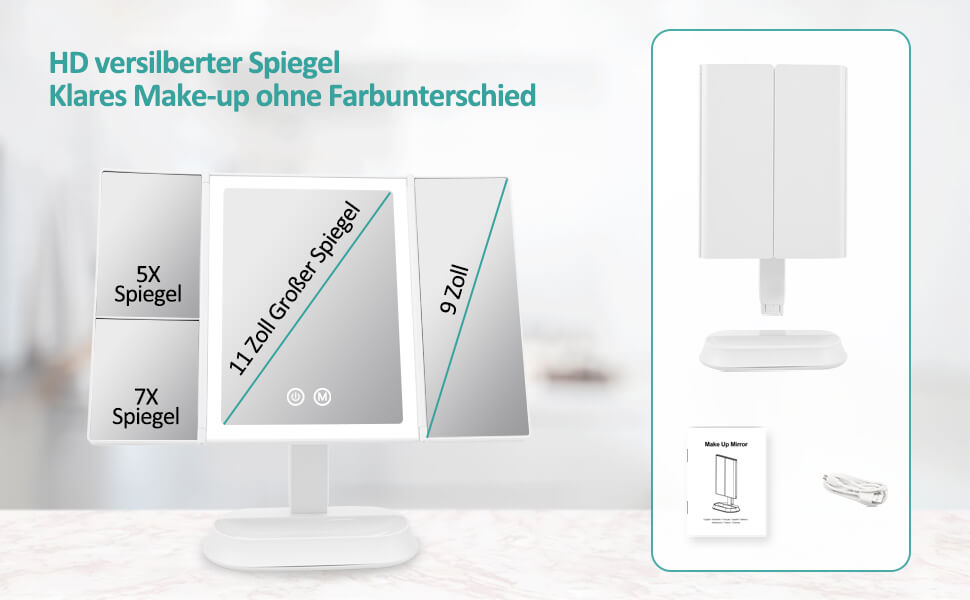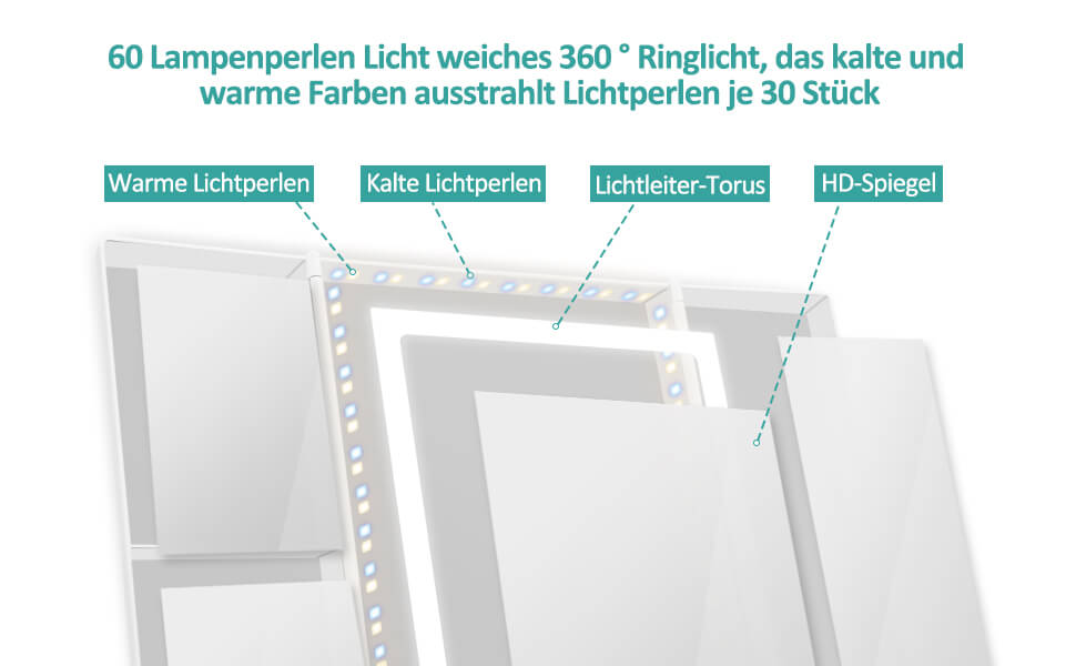 - Adaptives Licht: 3 Farbtemperaturen (warmweiß/natürlich/kaltweiß) mit Helligkeitssteuerung