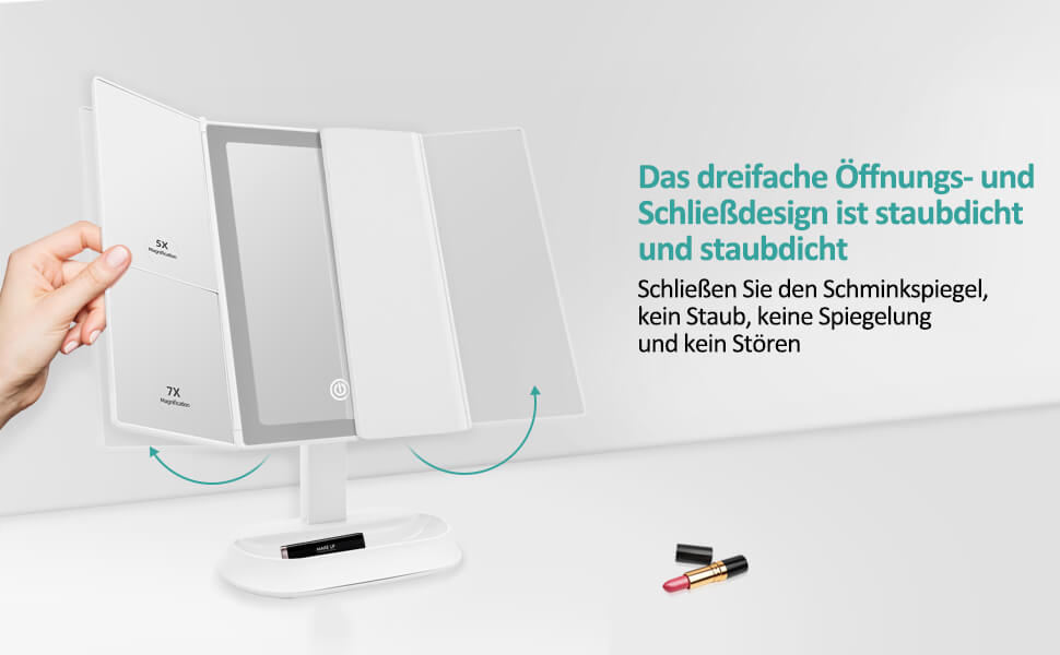 Klappbarer LED-Kosmetikspiegel mit 5x/7x Vergrößerung