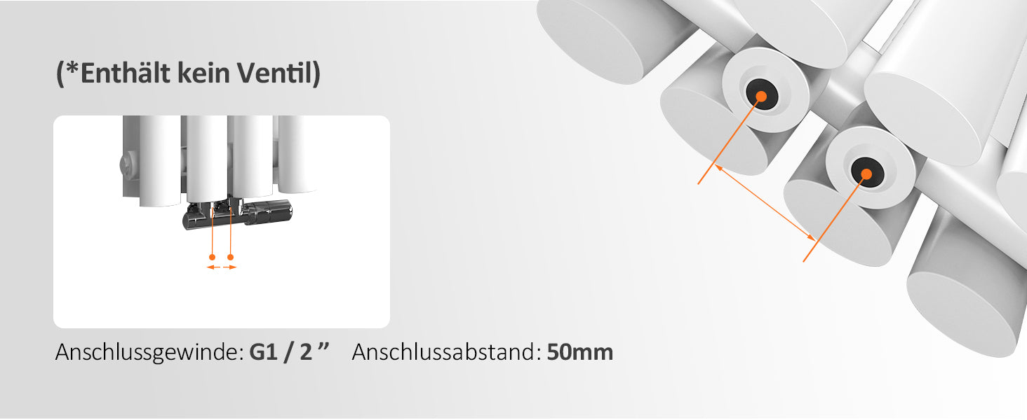 Hinweis: Heizkörperventile sind nicht enthalten.