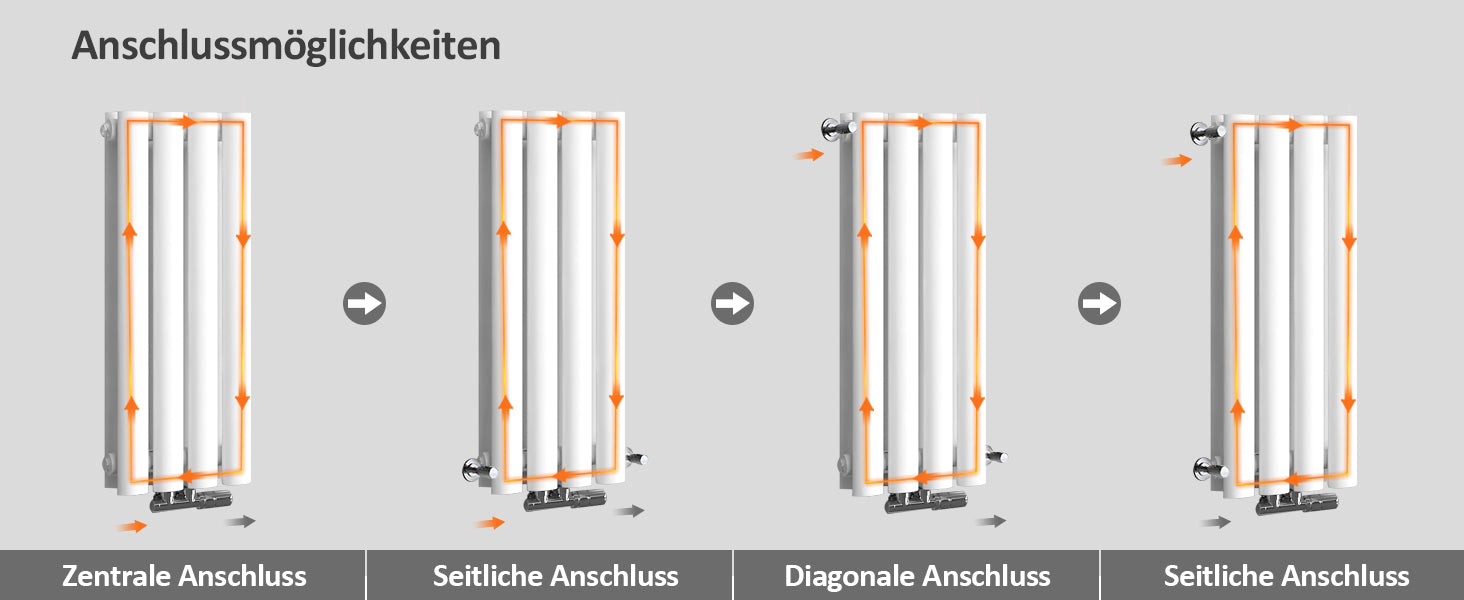 Heizkörper mit Ovalrohr-Design und 4 Anschlussarten, ein- oder doppellagig