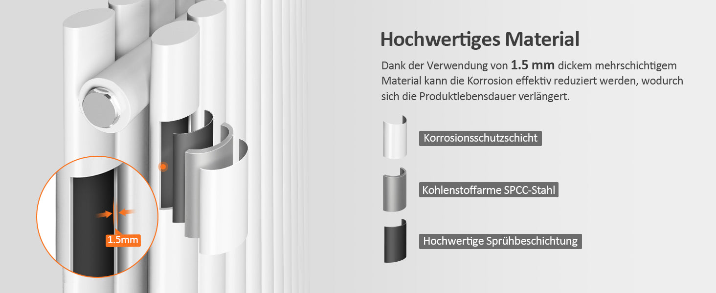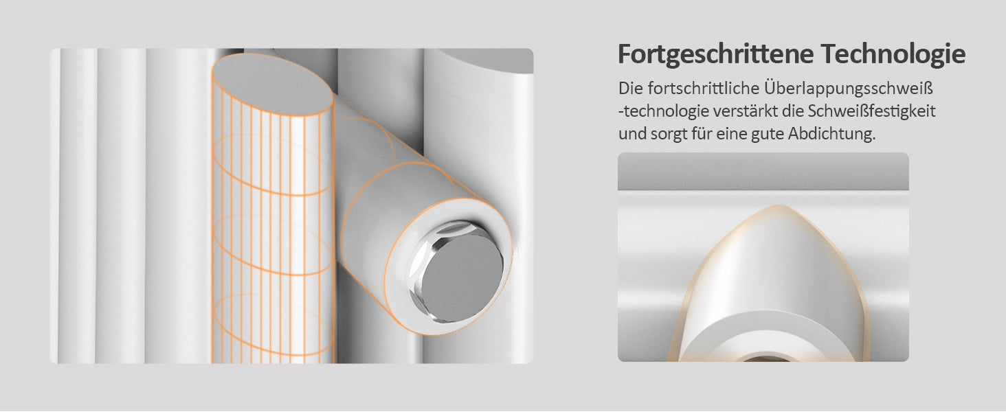 - Wählbar als einlagige oder doppellagige Variante für unterschiedliche Heizleistung