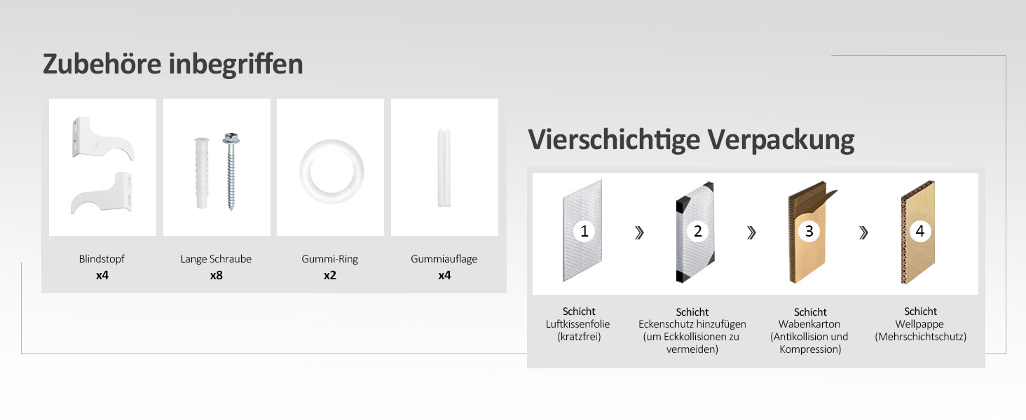 - Einfache Wandmontage – Montagezubehör im Lieferumfang enthalten