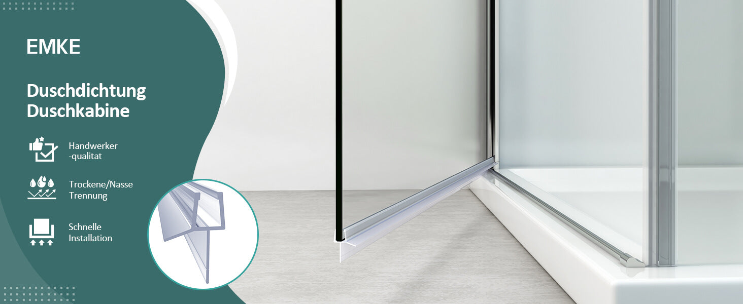 Duschdichtung mit Spritzwasserschutz, passend für 4–6 mm Glas