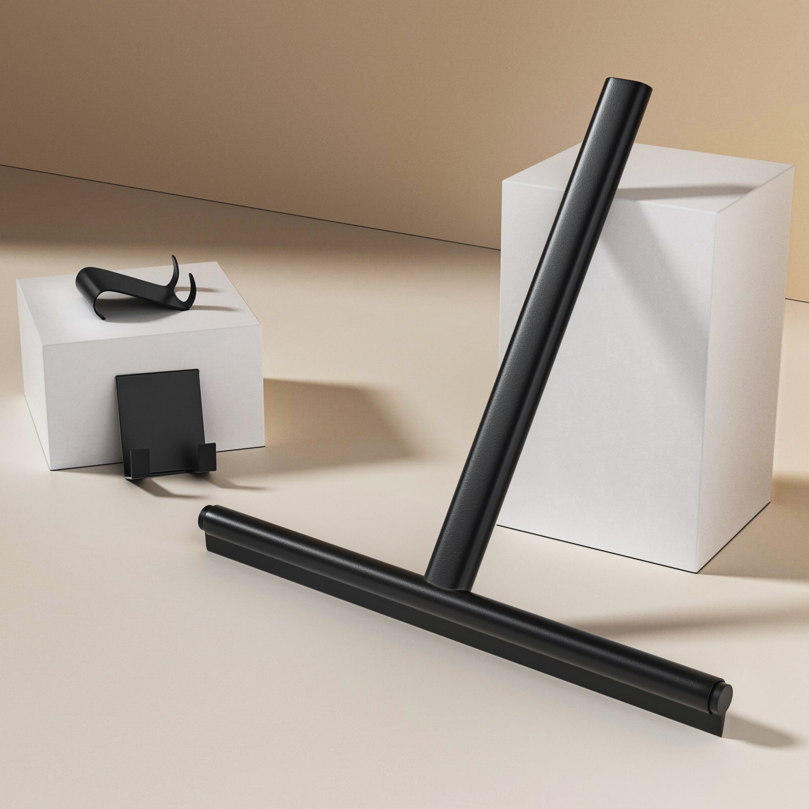 Silikon-Duschabzieher mit Edelstahlkern und selbstklebender Halterung für streifenfreie Reinigung