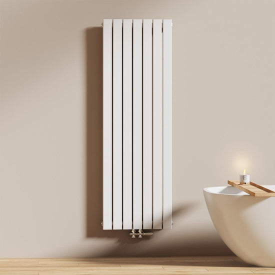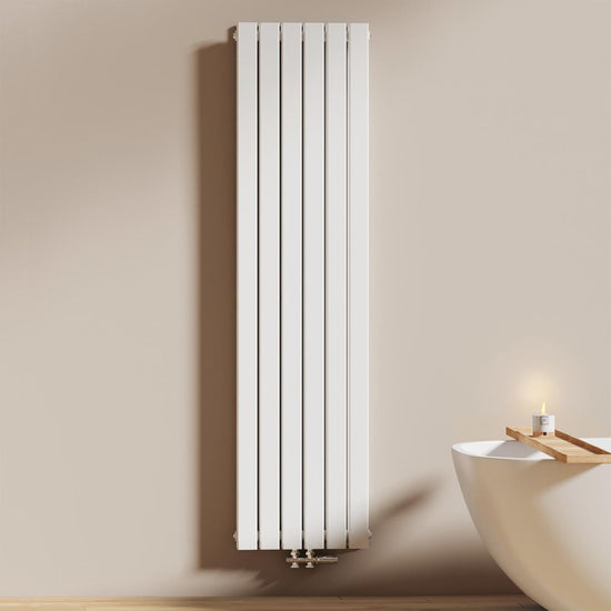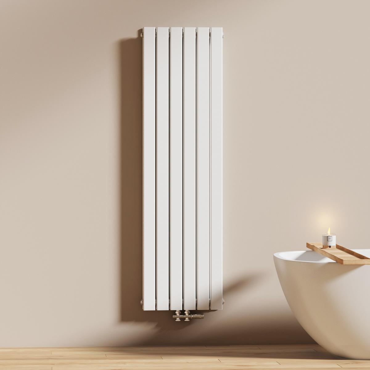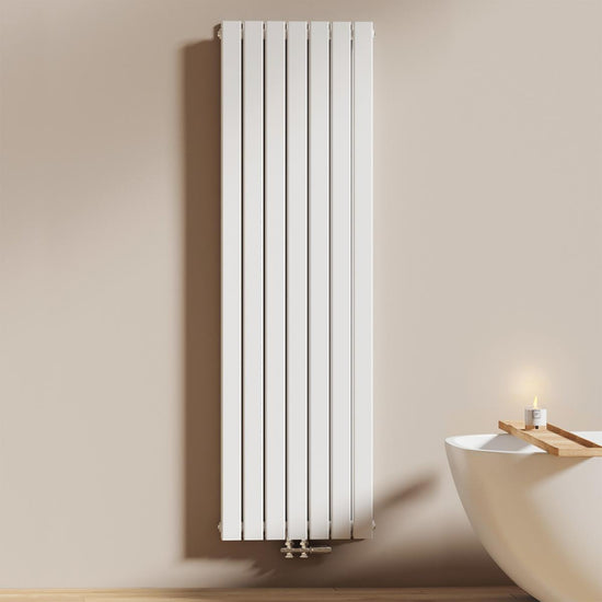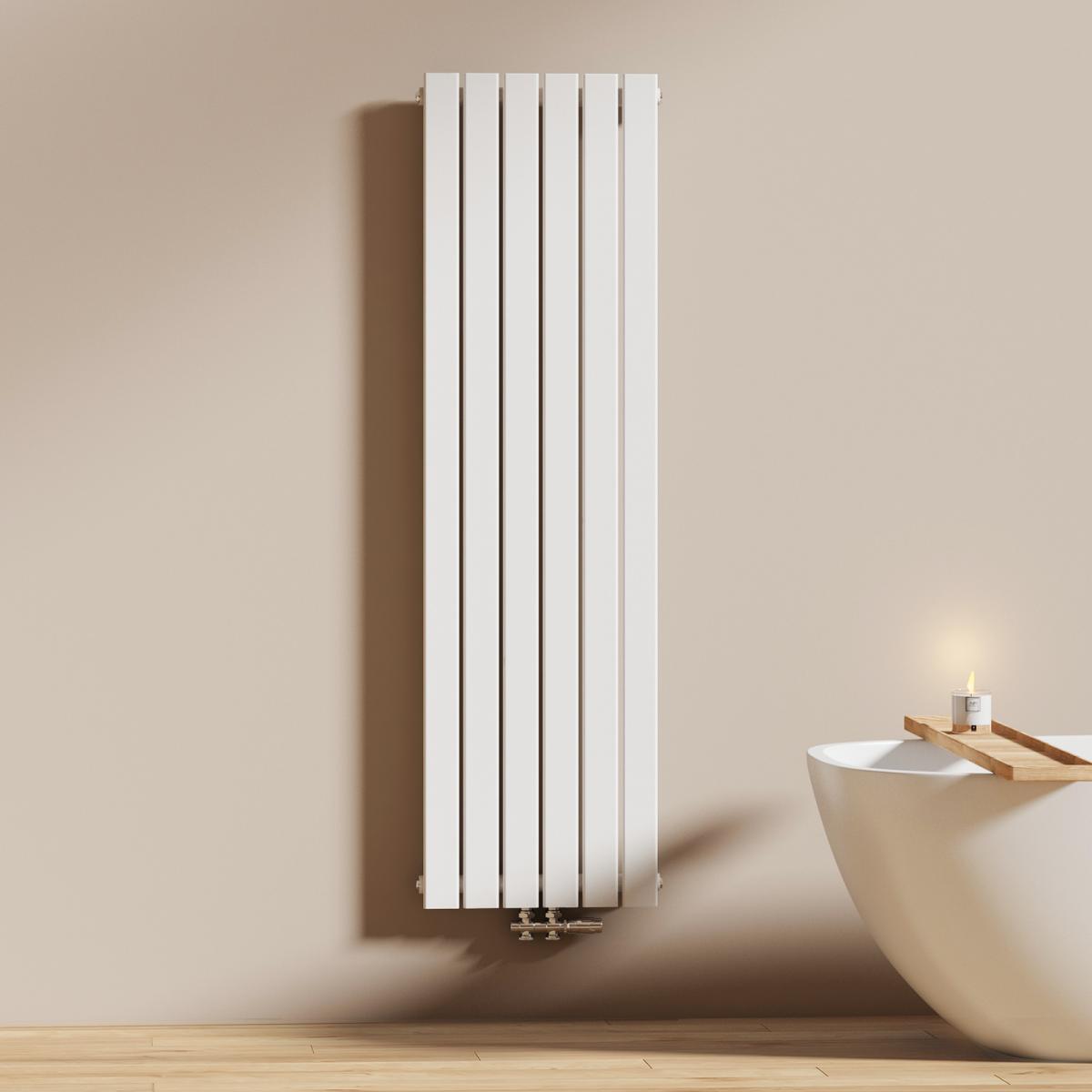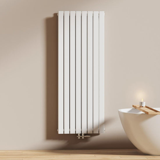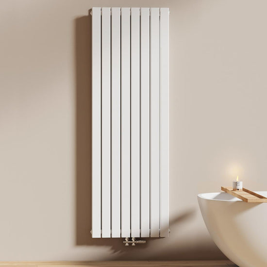 Dieser vertikale Heizkörper kombiniert modernes Design mit effizienter Wärmeleistung – ideal für stilvolle Badezimmer und Wohnräume. Erhältlich in Weiß oder Anthrazit.