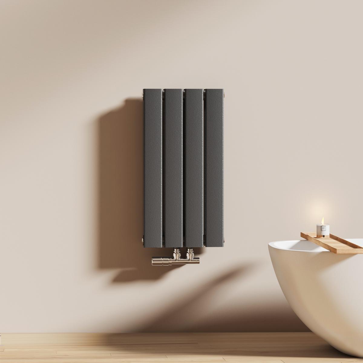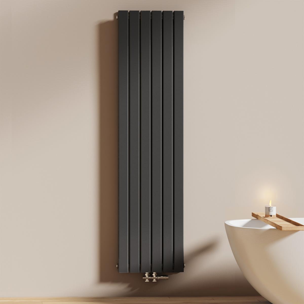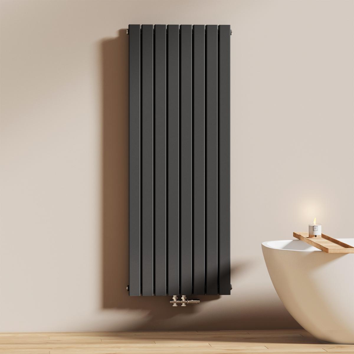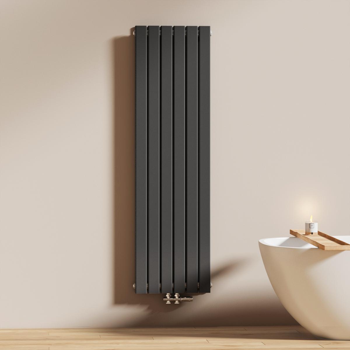 Dieser vertikale Heizkörper kombiniert modernes Design mit effizienter Wärmeleistung – ideal für stilvolle Badezimmer und Wohnräume. Erhältlich in Weiß oder Anthrazit.