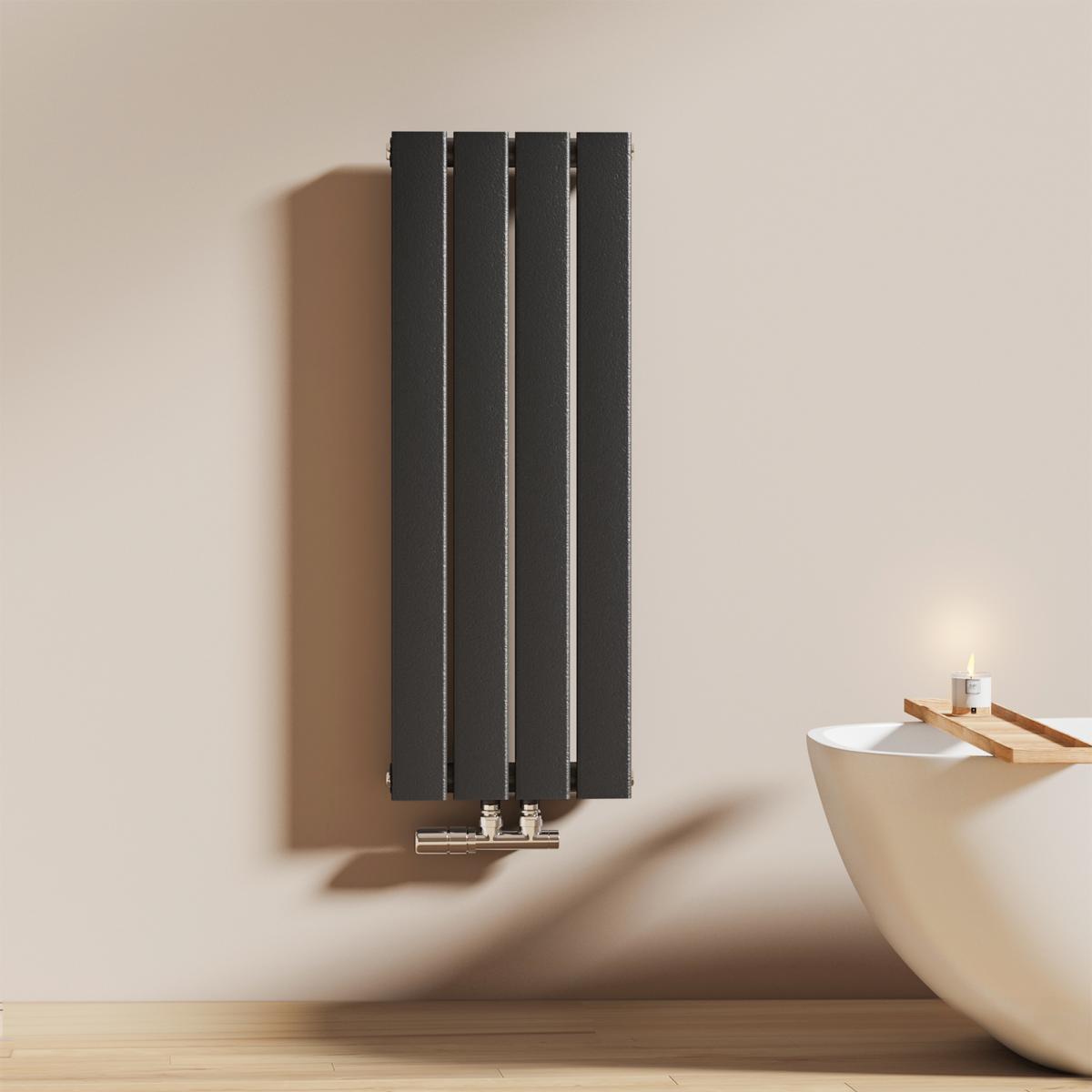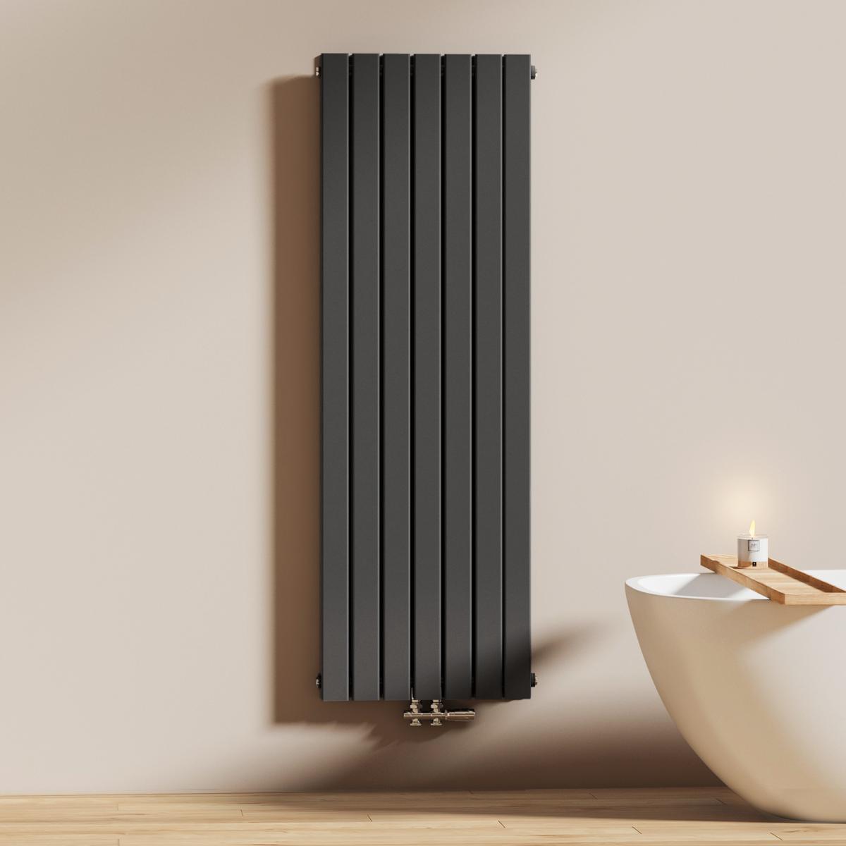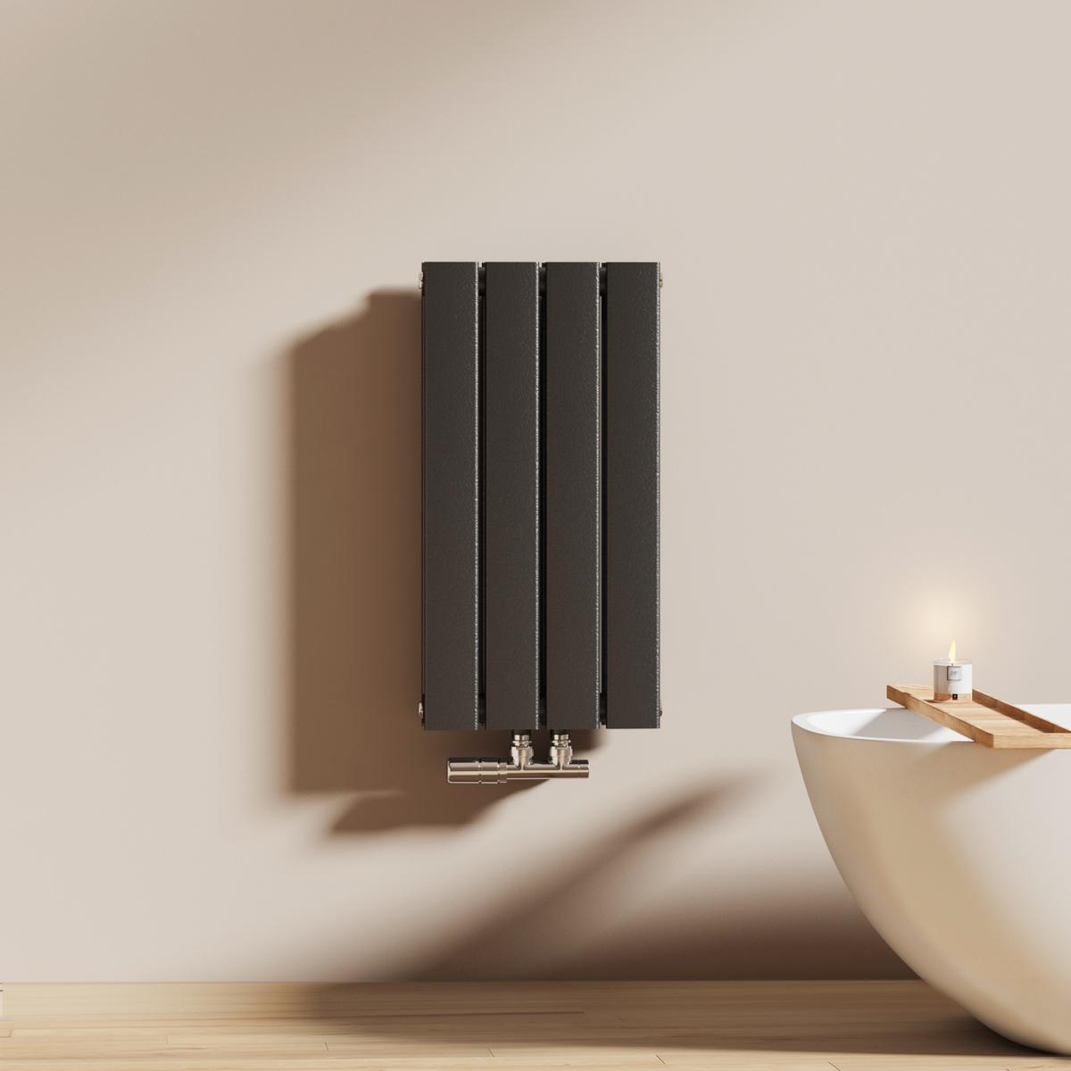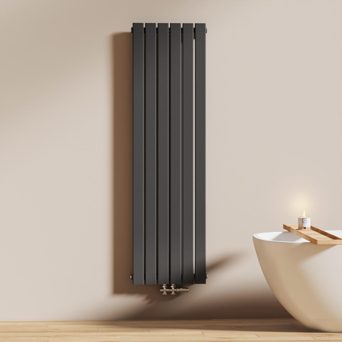 Dieser vertikale Heizkörper kombiniert modernes Design mit effizienter Wärmeleistung – ideal für stilvolle Badezimmer und Wohnräume. Erhältlich in Weiß oder Anthrazit.