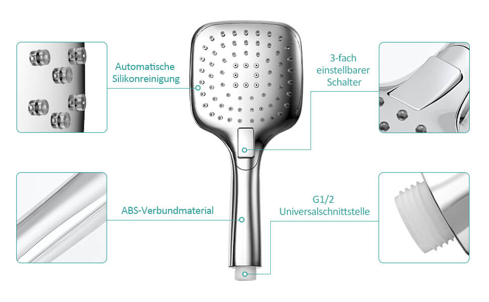 - Universeller Anschluss – passend für alle gängigen Duschschläuche