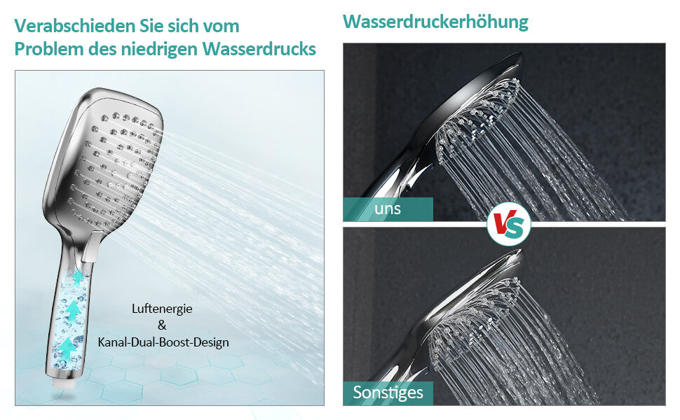 - Dual-Boost-Kanaldesign für starken Wasserstrahl bei jedem Druck