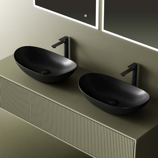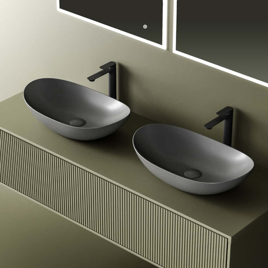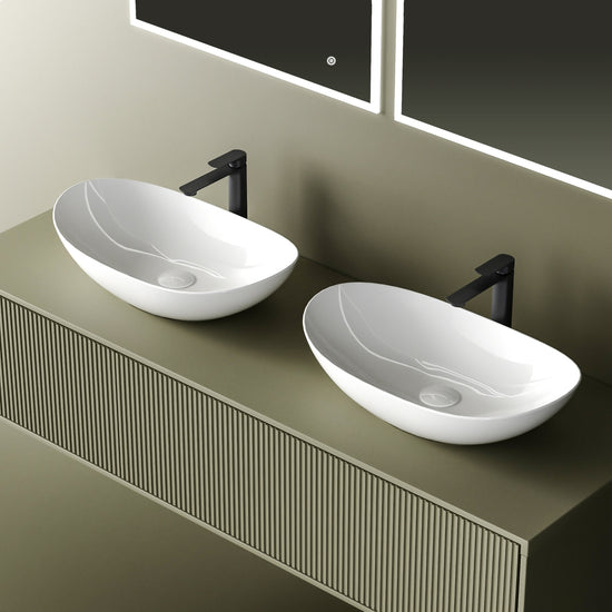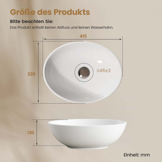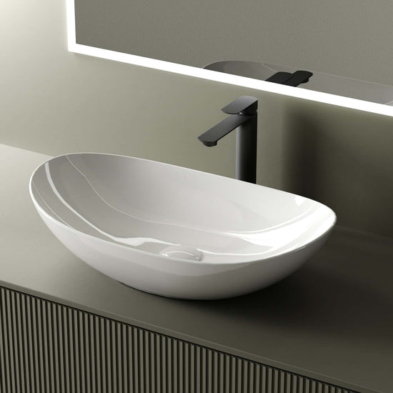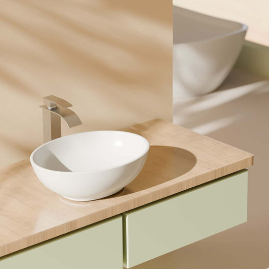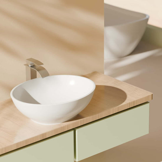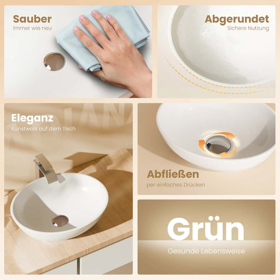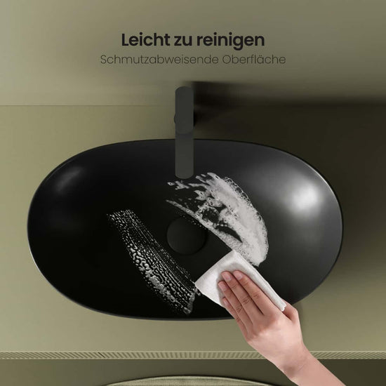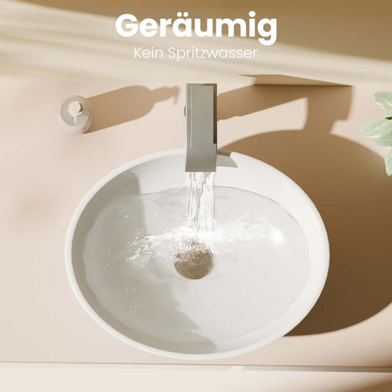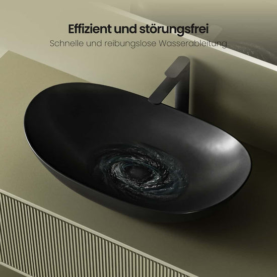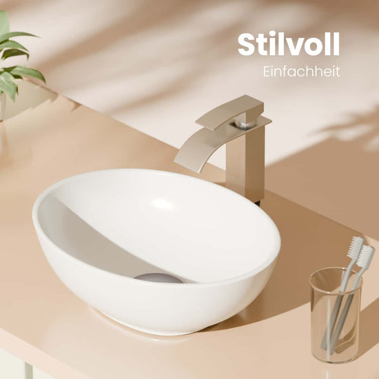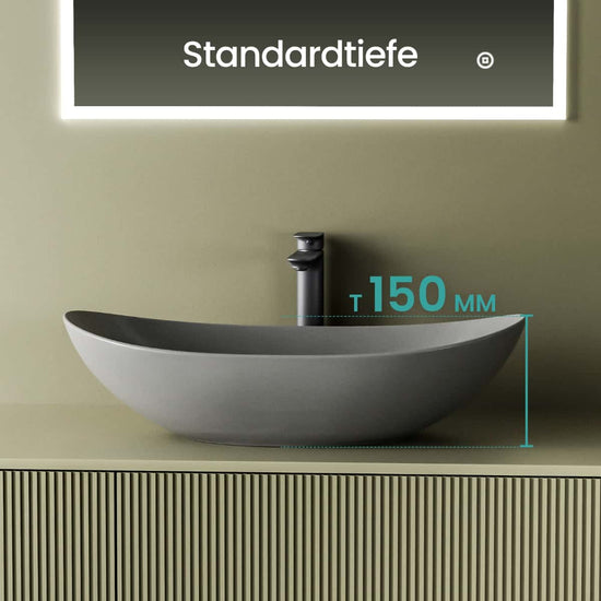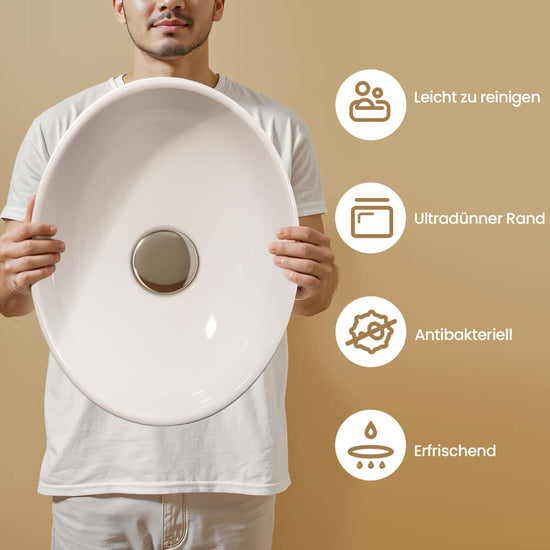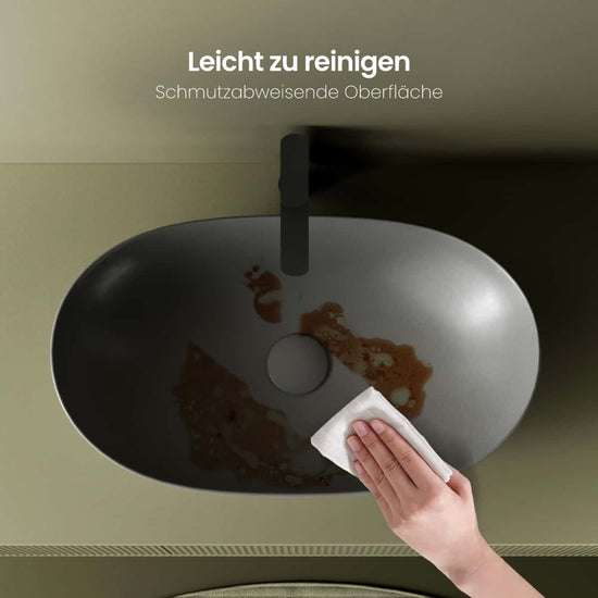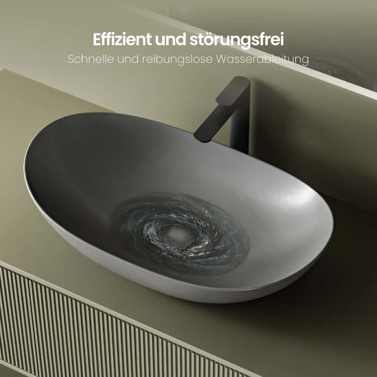 Ovaler Aufsatzwaschtisch mit pflegeleichter Oberfläche & ohne Hahnloch – ohne Überlauf