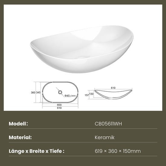 Dieser formschöne Aufsatzwaschtisch mit eleganter ovaler Silhouette bringt moderne Ästhetik in jedes Bad. Die hygienische Keramikoberfläche ist besonders pflegeleicht und bleibt dauerhaft glänzend.
