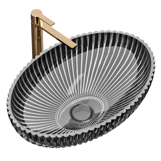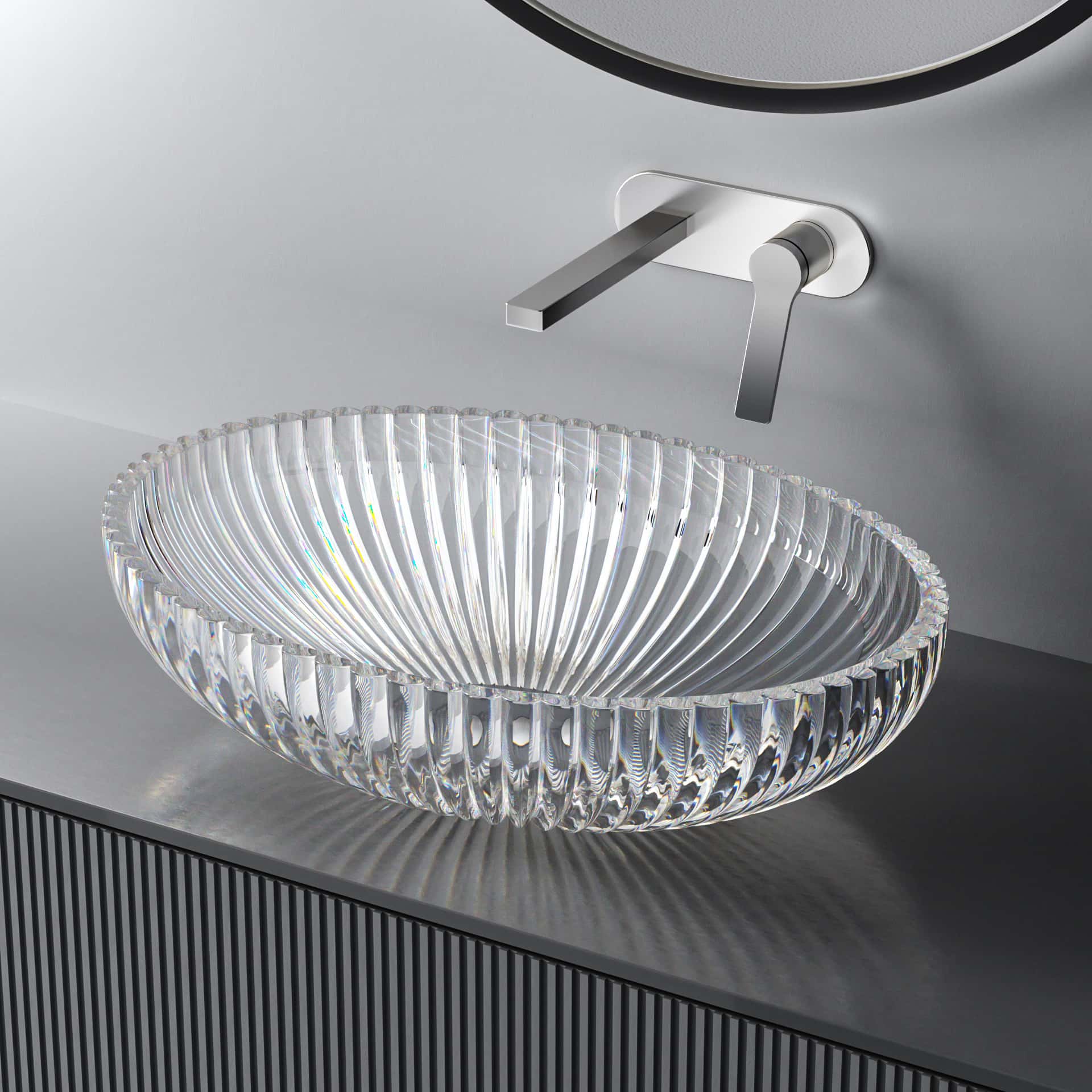 Ovales Aufsatzwaschbecken aus Klarglas mit diamantgeschliffener Oberfläche
