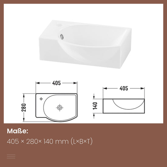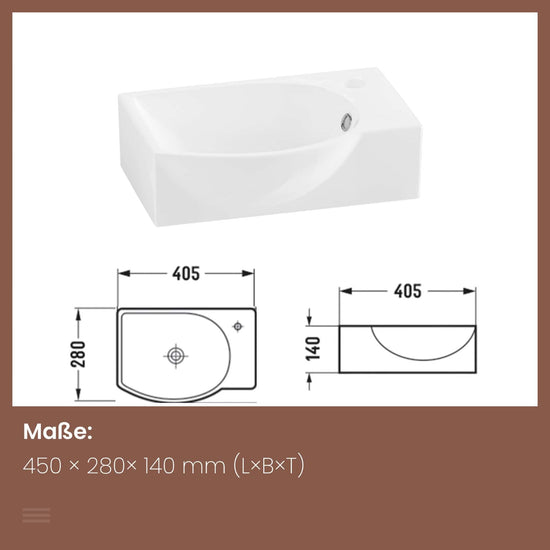 Dieses kleine Hängewaschbecken aus Keramik eignet sich ideal für kompakte Bäder und Gäste-WCs. Es bietet flexible Armaturenpositionen und kombiniert modernes Design mit langlebiger Qualität.