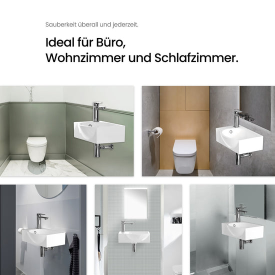 Keramik-Hängewaschbecken mit Armaturenbohrung, kompakt & flexibel für kleine Bäder
