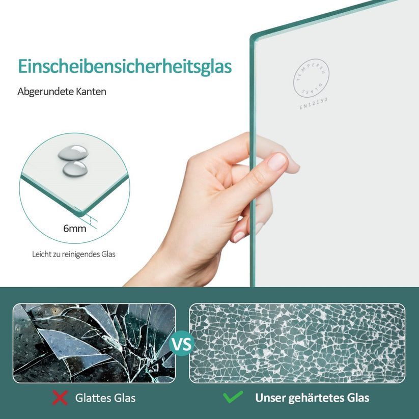 - ESG-Sicherheitsglas (6 mm) – CE & EN 12150 zertifiziert