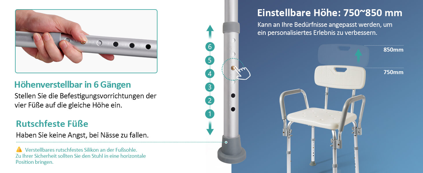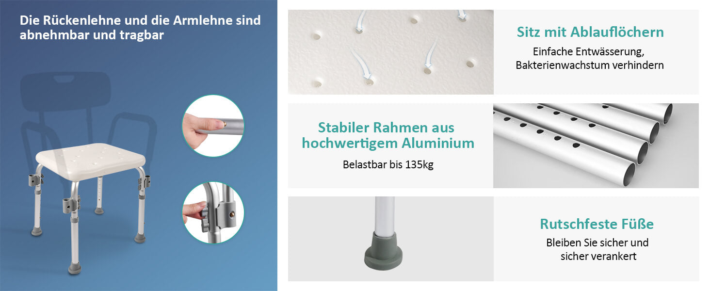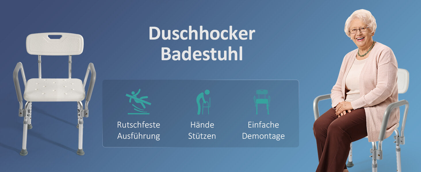 Duschstuhl mit Armlehnen und Rückenlehne – höhenverstellbar & rutschfest