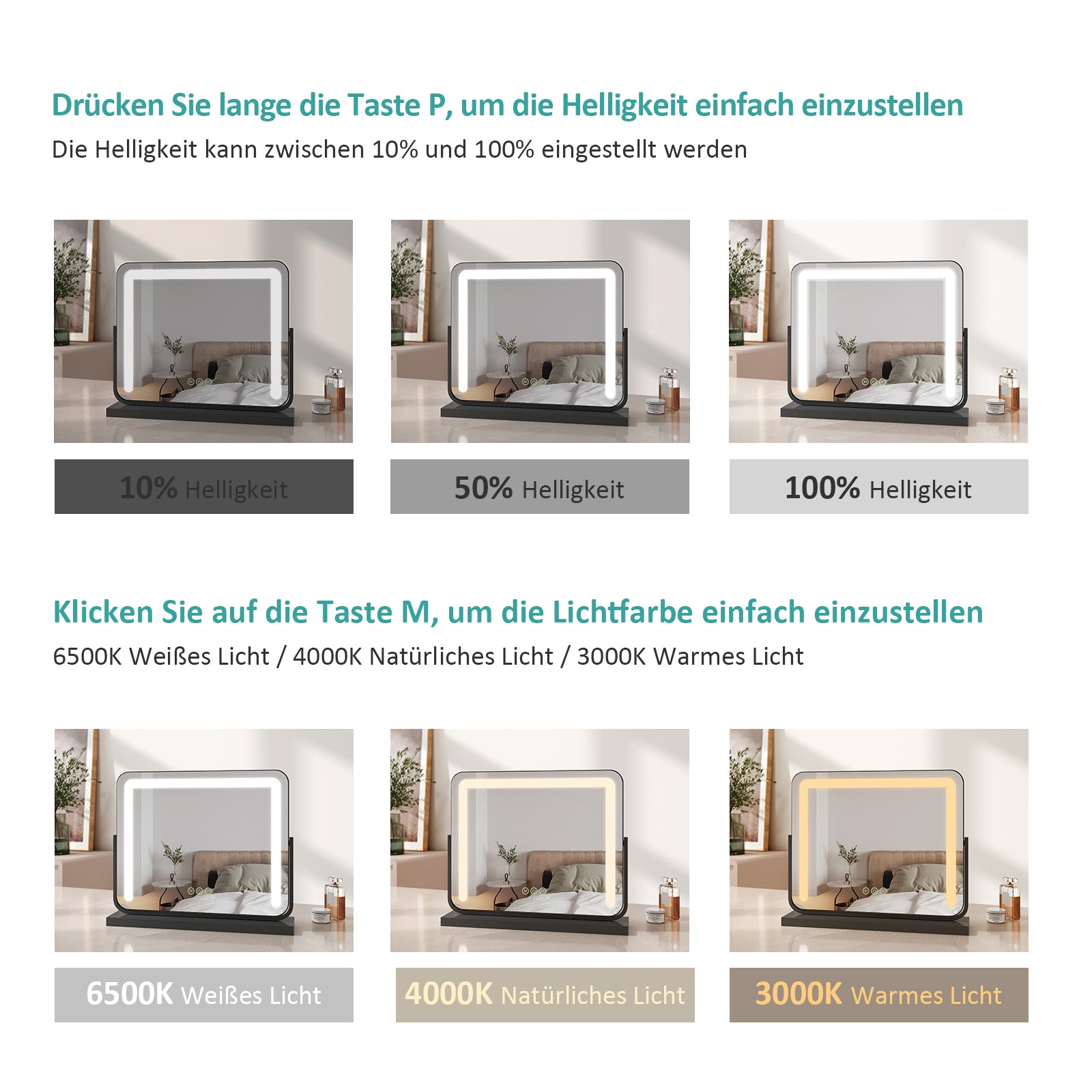 - 3 Lichtfarben: Warmweiß, Neutralweiß & Kaltweiß (3000/4000/6500 K)