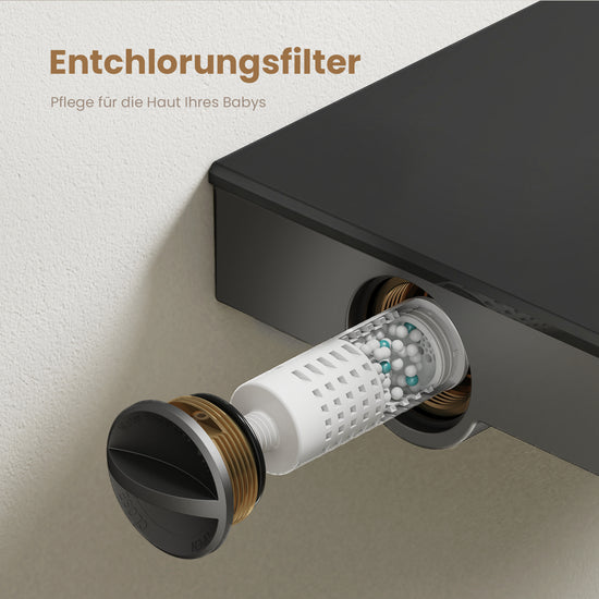 • Integrierter Wasserfilter – Entfernt zuverlässig Chlor und Verunreinigungen aus dem Wasser für mehr Haut- und Haarschutz
