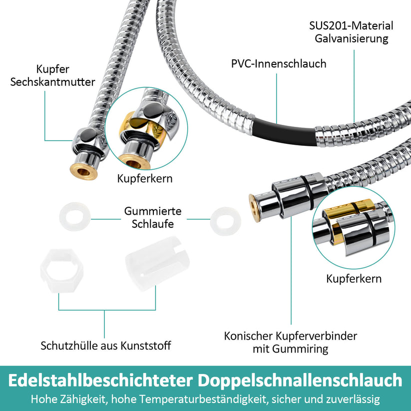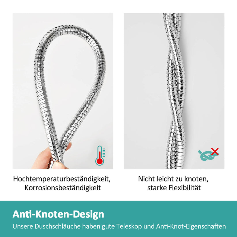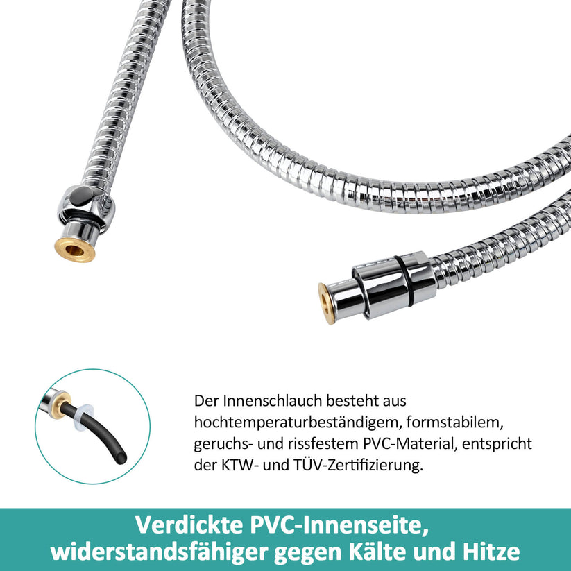 Dieser zweilagige Schlauch verbindet hohe Flexibilität mit robuster Korrosionsbeständigkeit. Ideal für Haushaltsduschsysteme, bietet sicheren Wasserdurchfluss bei hohen Temperaturen und Druckbelastung.