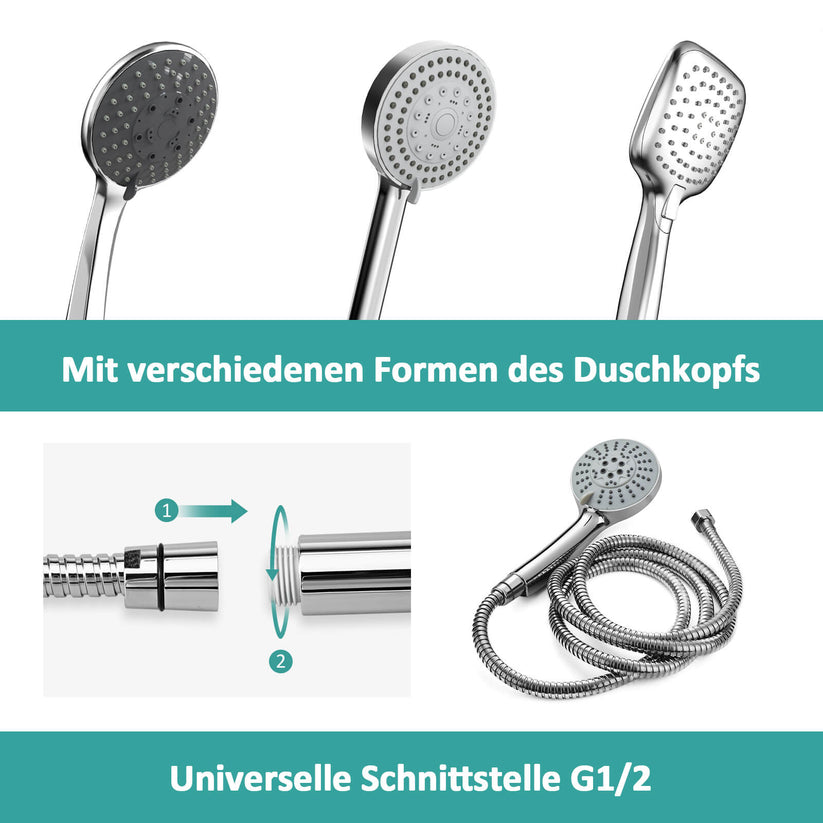 - Kompatibilität: Universeller G1/2''-Anschluss für Standard-Armaturen